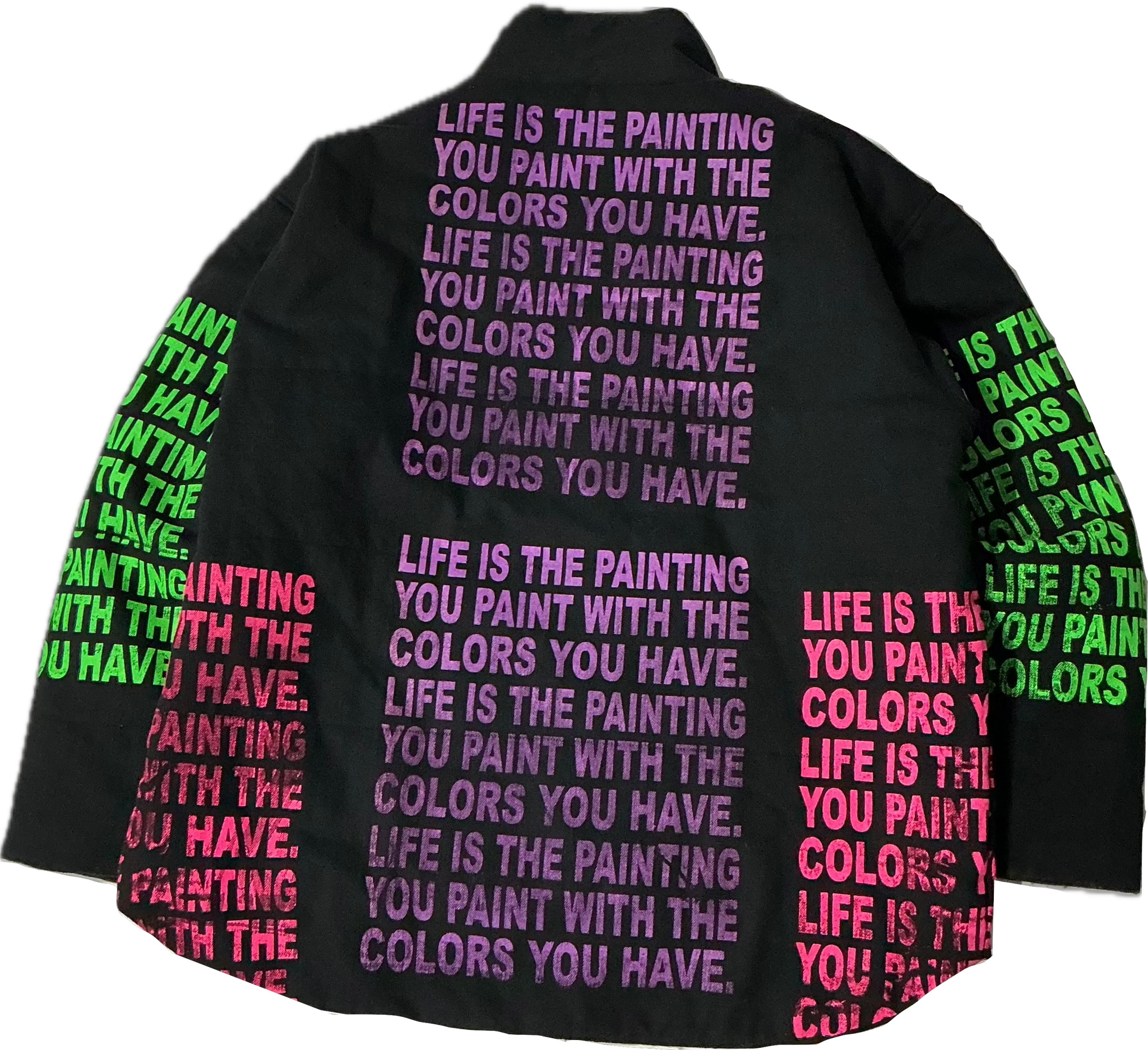 This is a one of a kind piece of clothing that has Life Is The Painting You Paint printed all over.