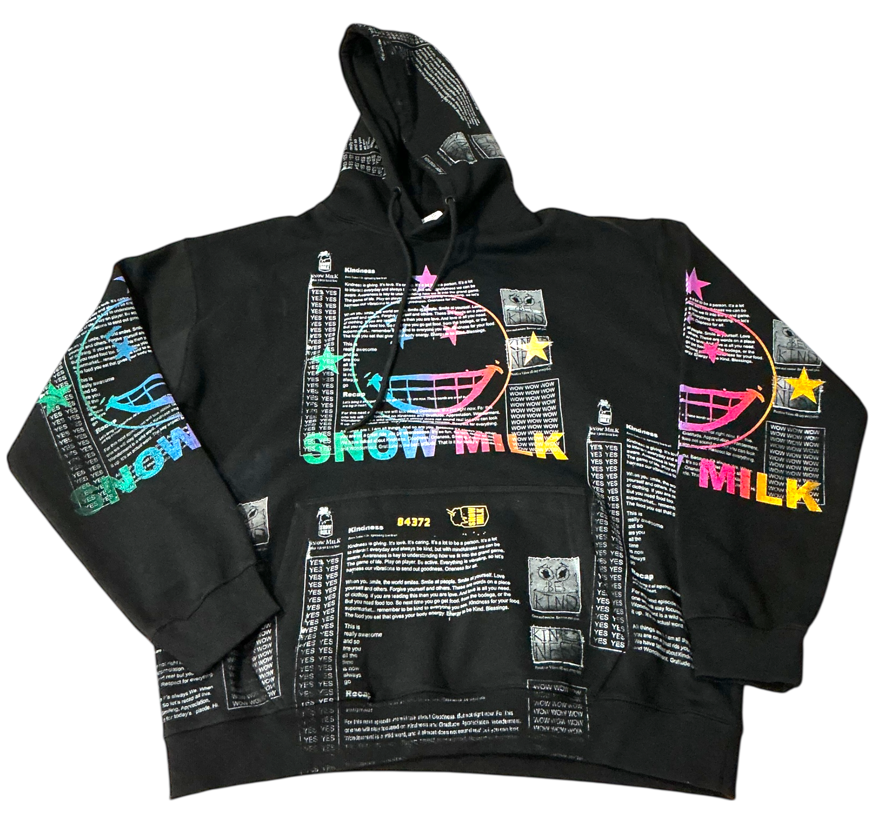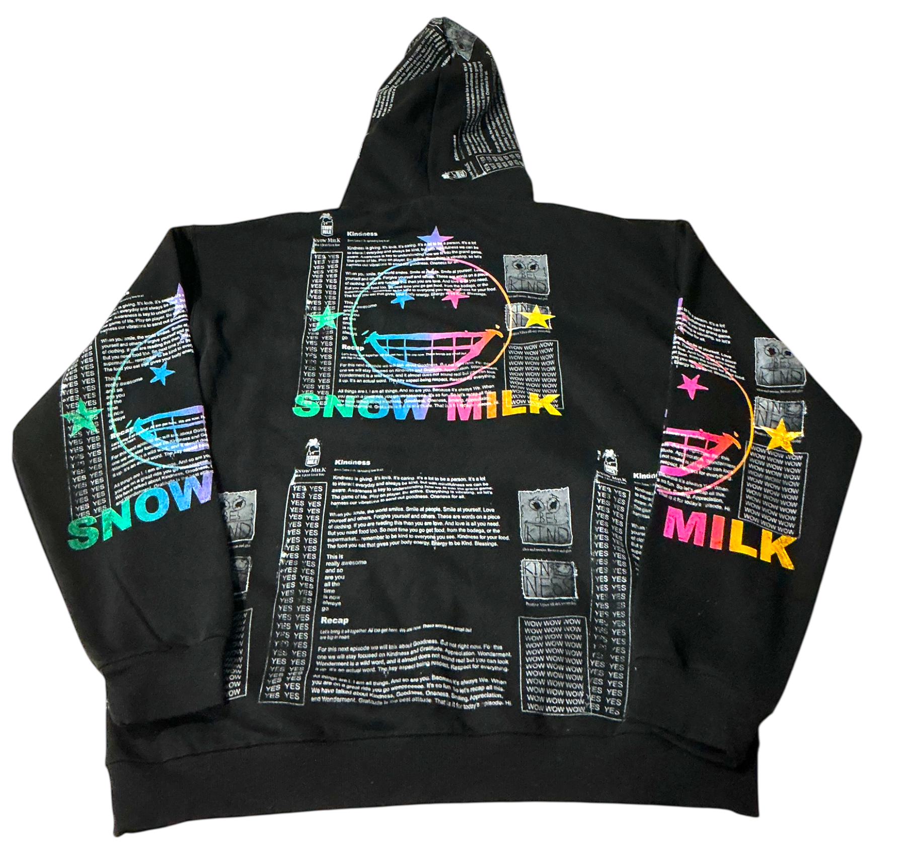 This is a one of a kind piece of clothing has a sun with optimism as a way of life printed all over.