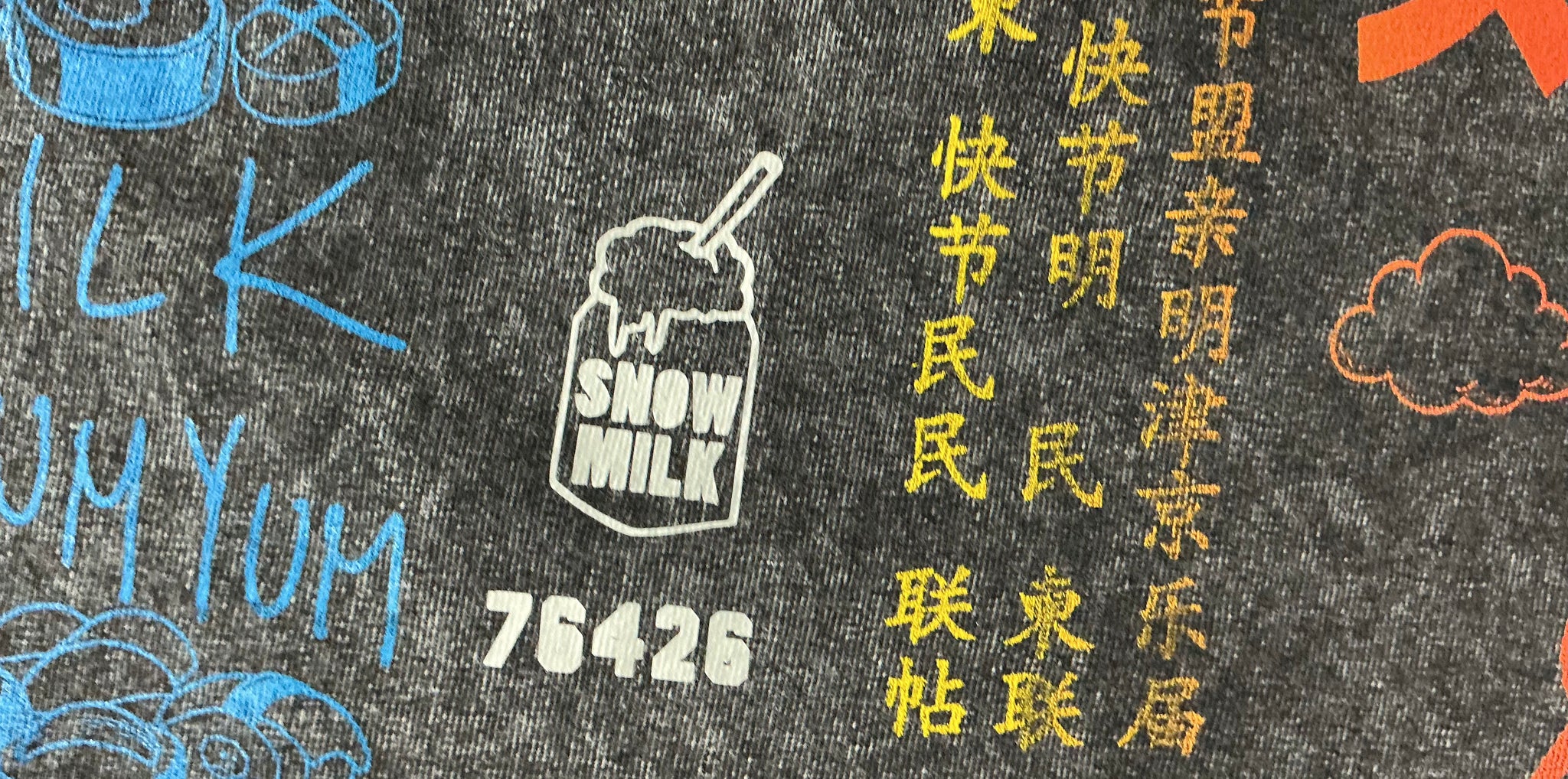 This design has a cute anime snow milk with Japanese writing and a message printed all over
