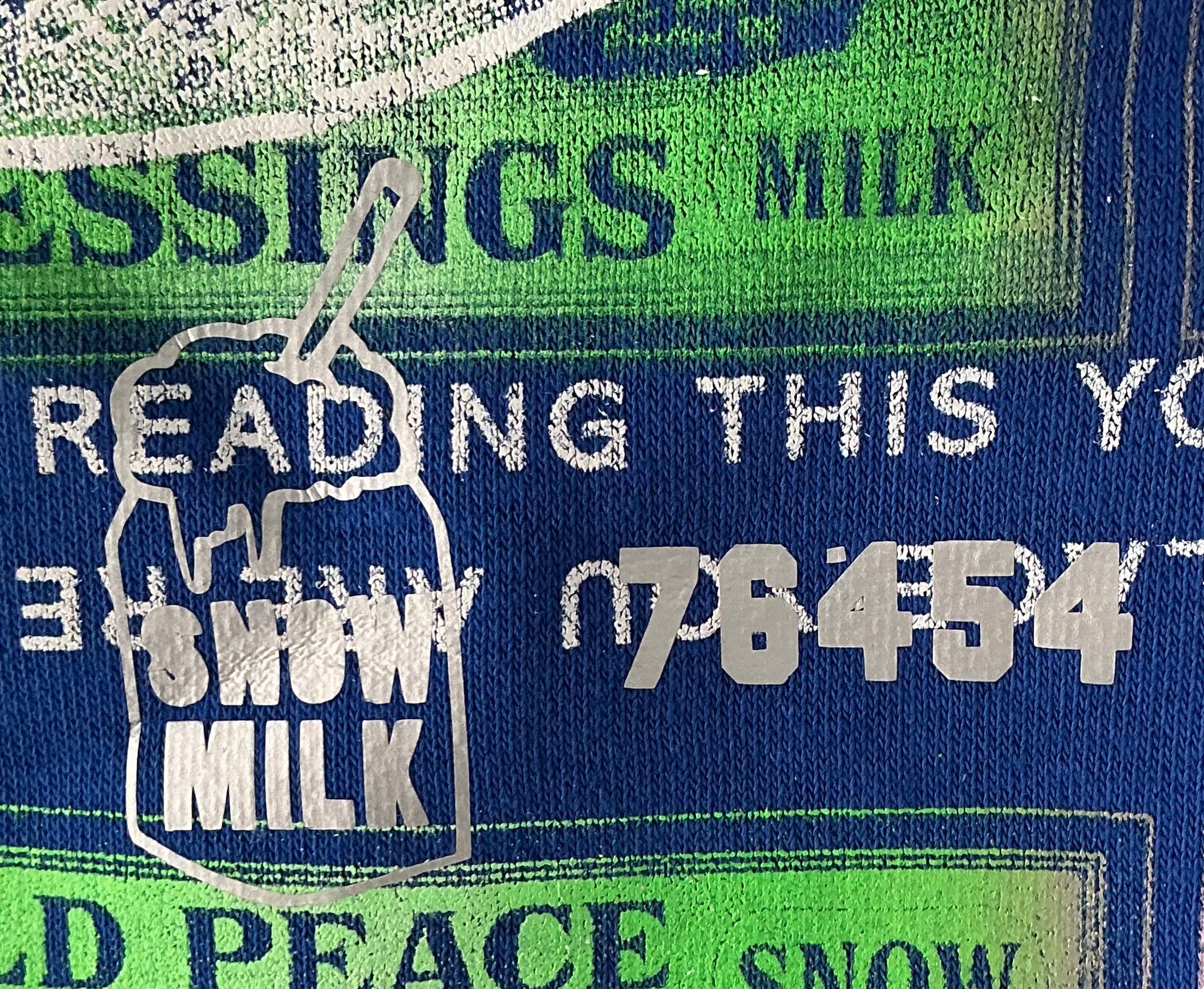 This is a one of a kind piece of clothing that has Big Blessings Bucks, Snow Milk and a special message printed all over the garment.