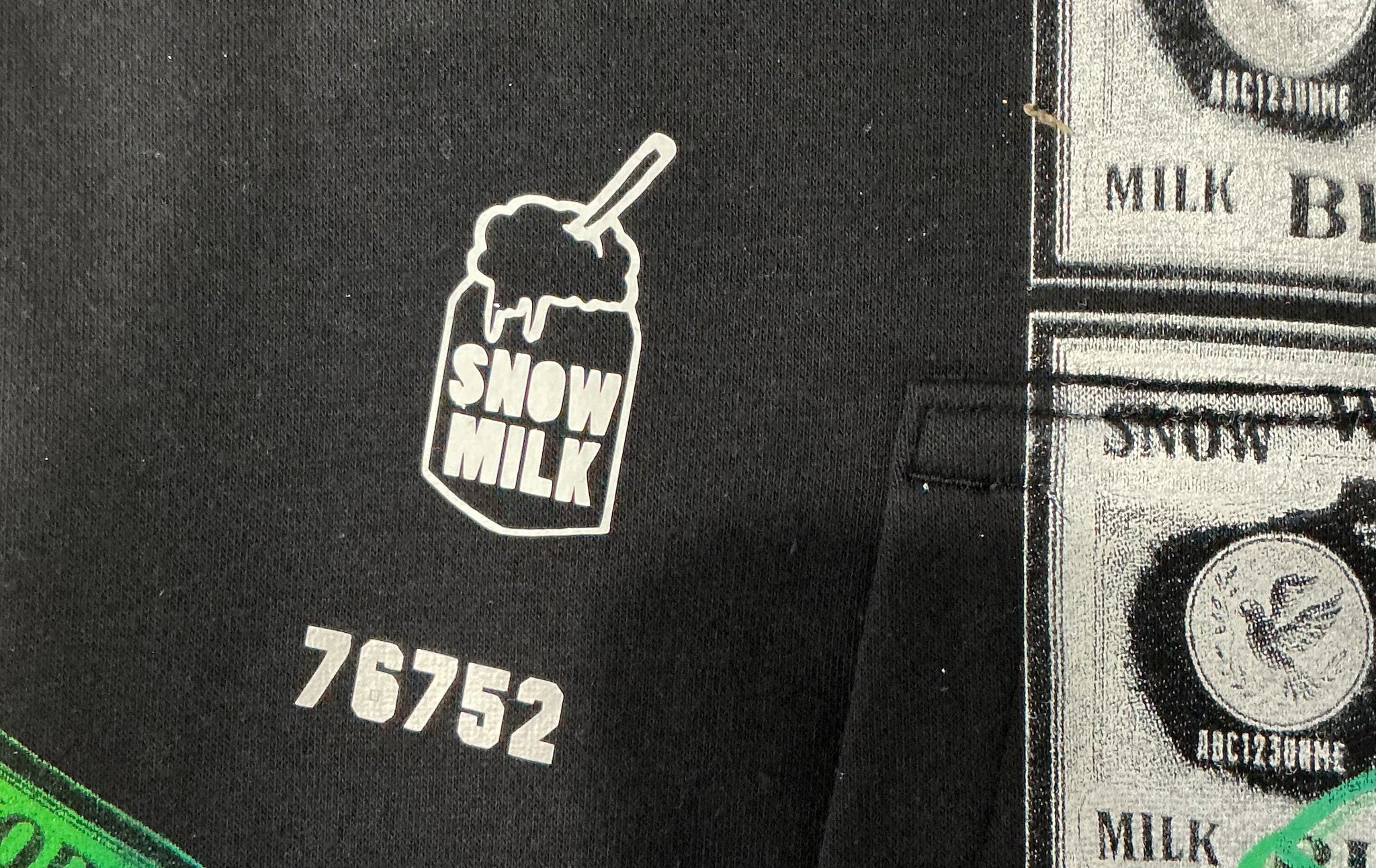 This is a one of a kind piece of clothing that has Big Blessings Bucks, Snow Milk and a special message printed all over the garment.