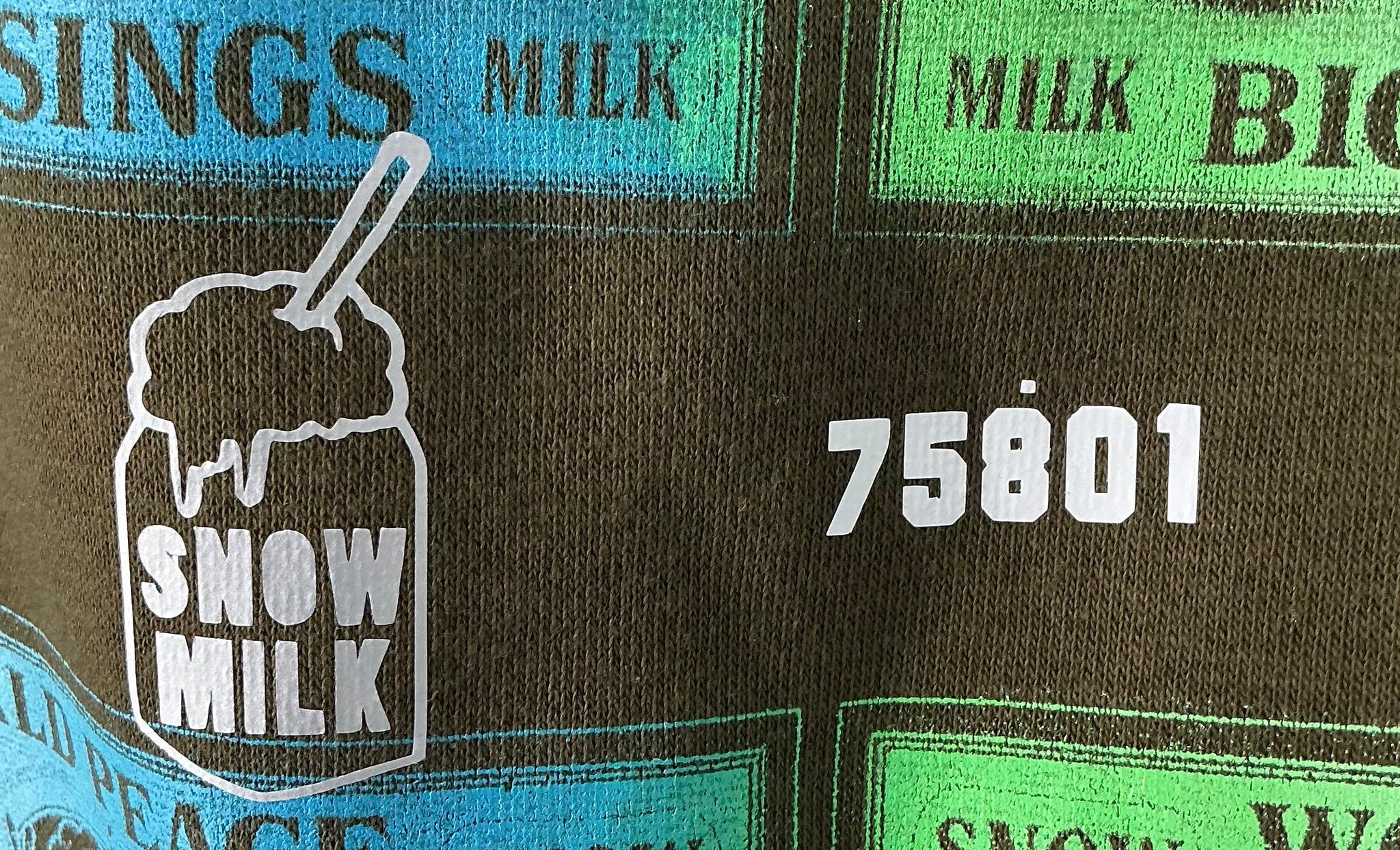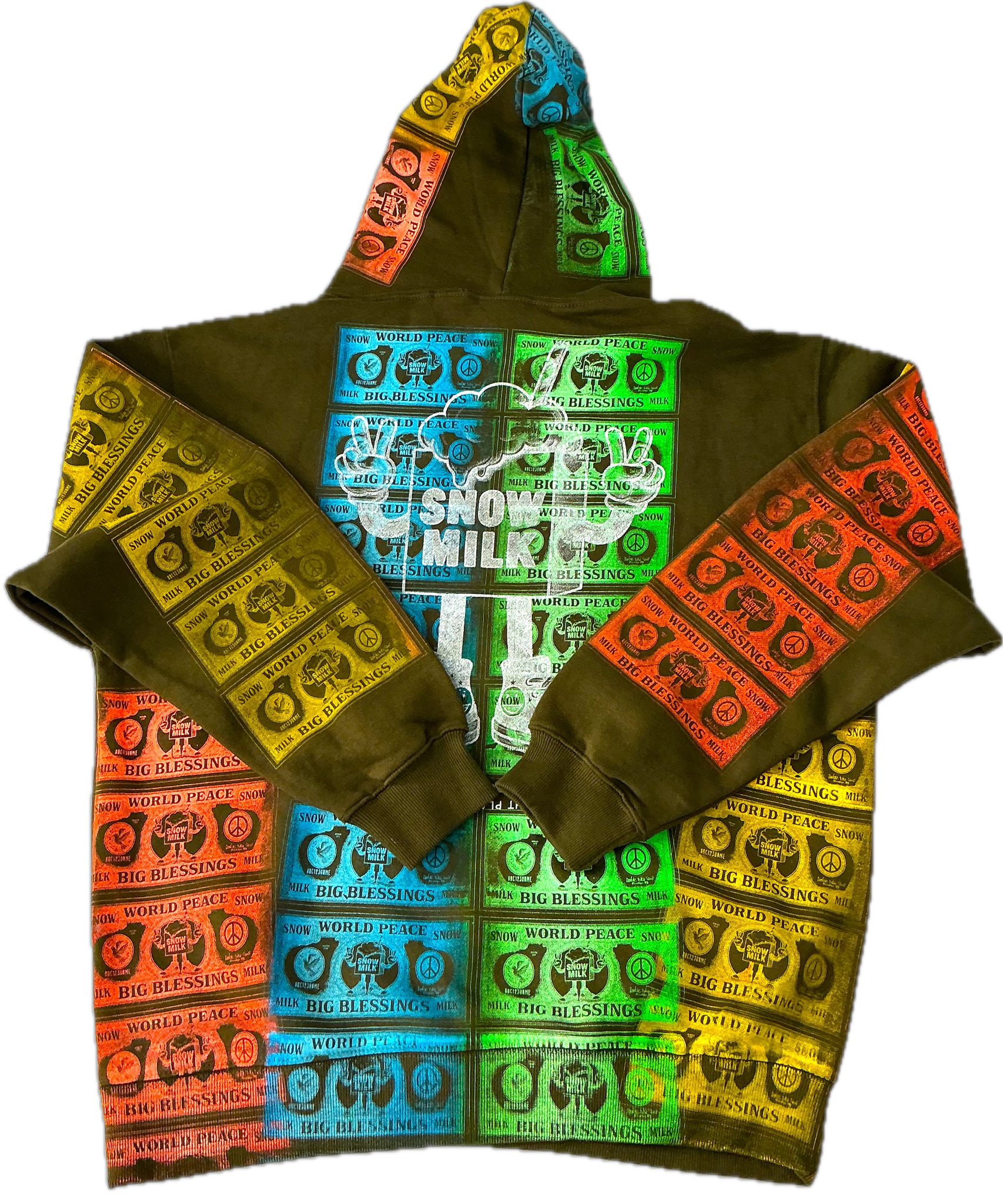This is a one of a kind piece of clothing that has Big Blessings Bucks, Snow Milk and a special message printed all over the garment.