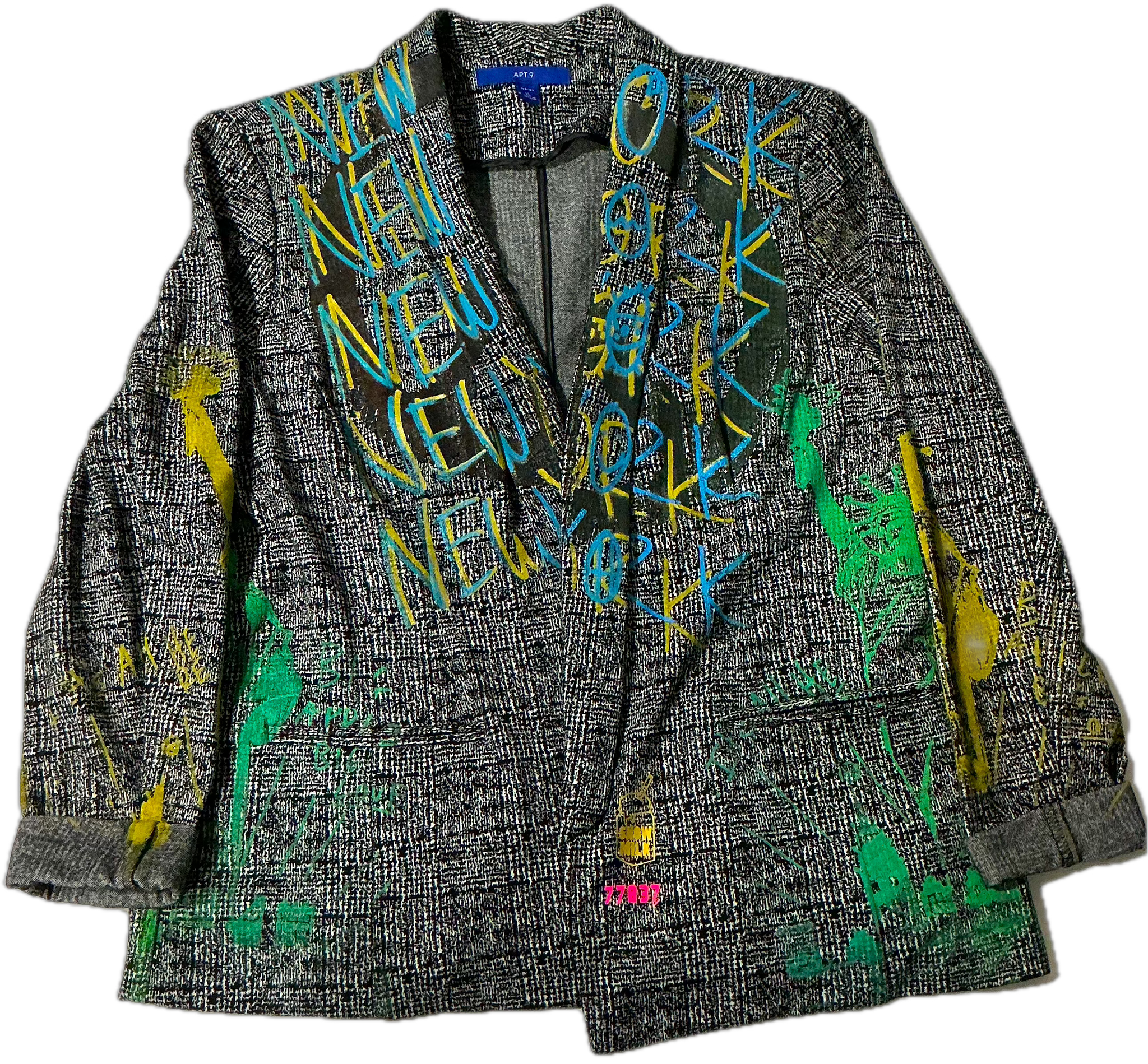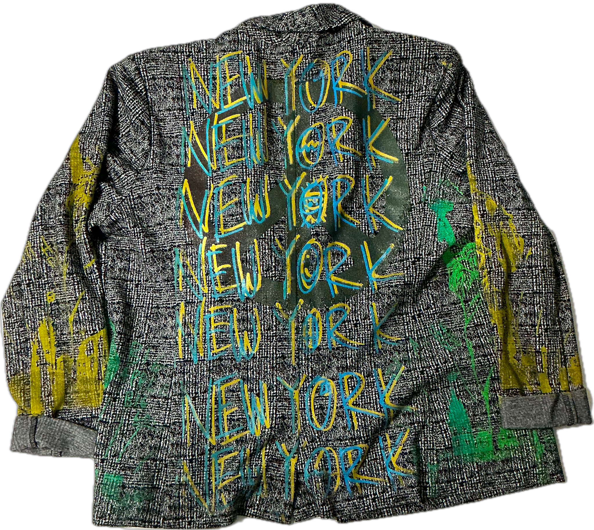 This is a one of a kind piece of clothing that has New York and the statue of liberty printed all over the garment.