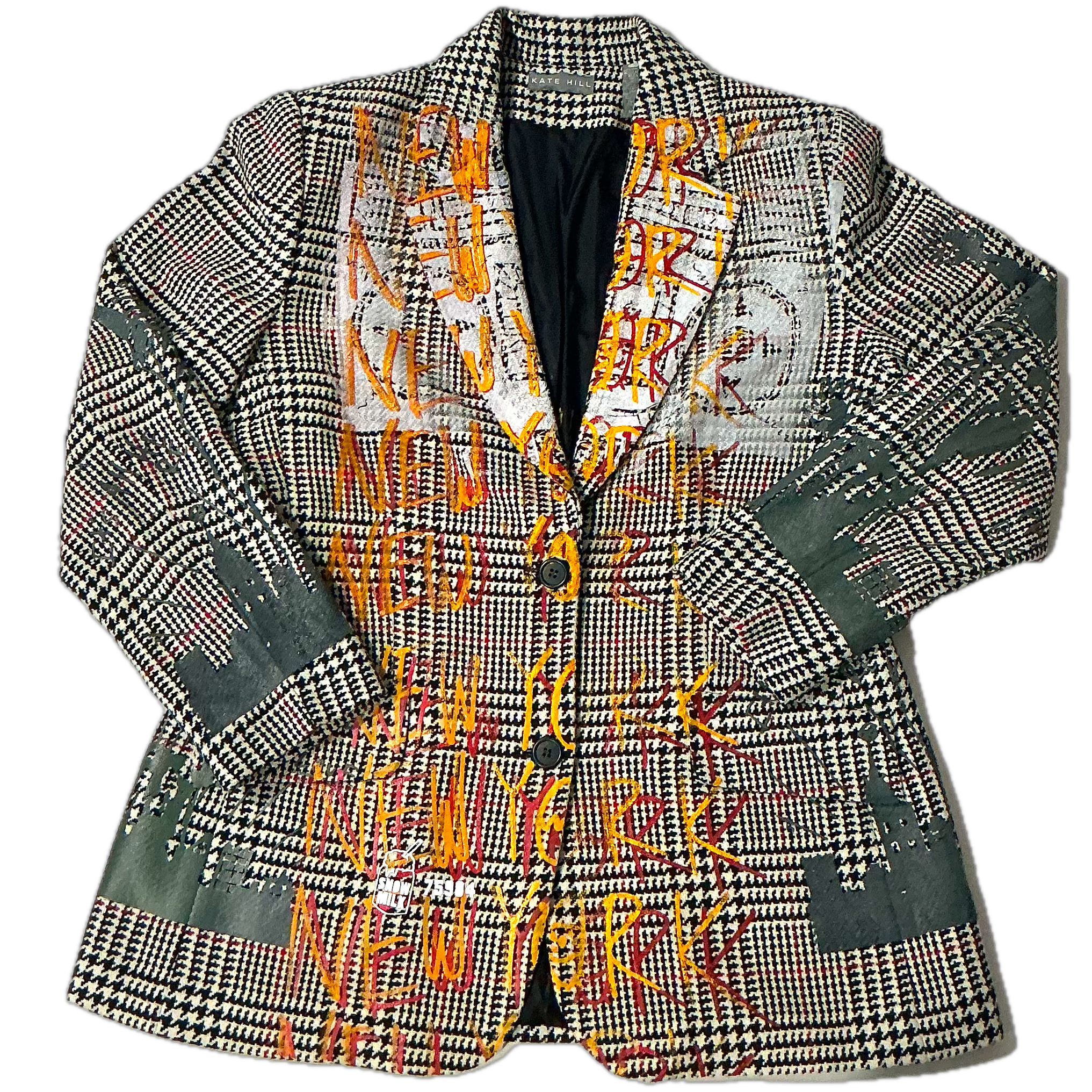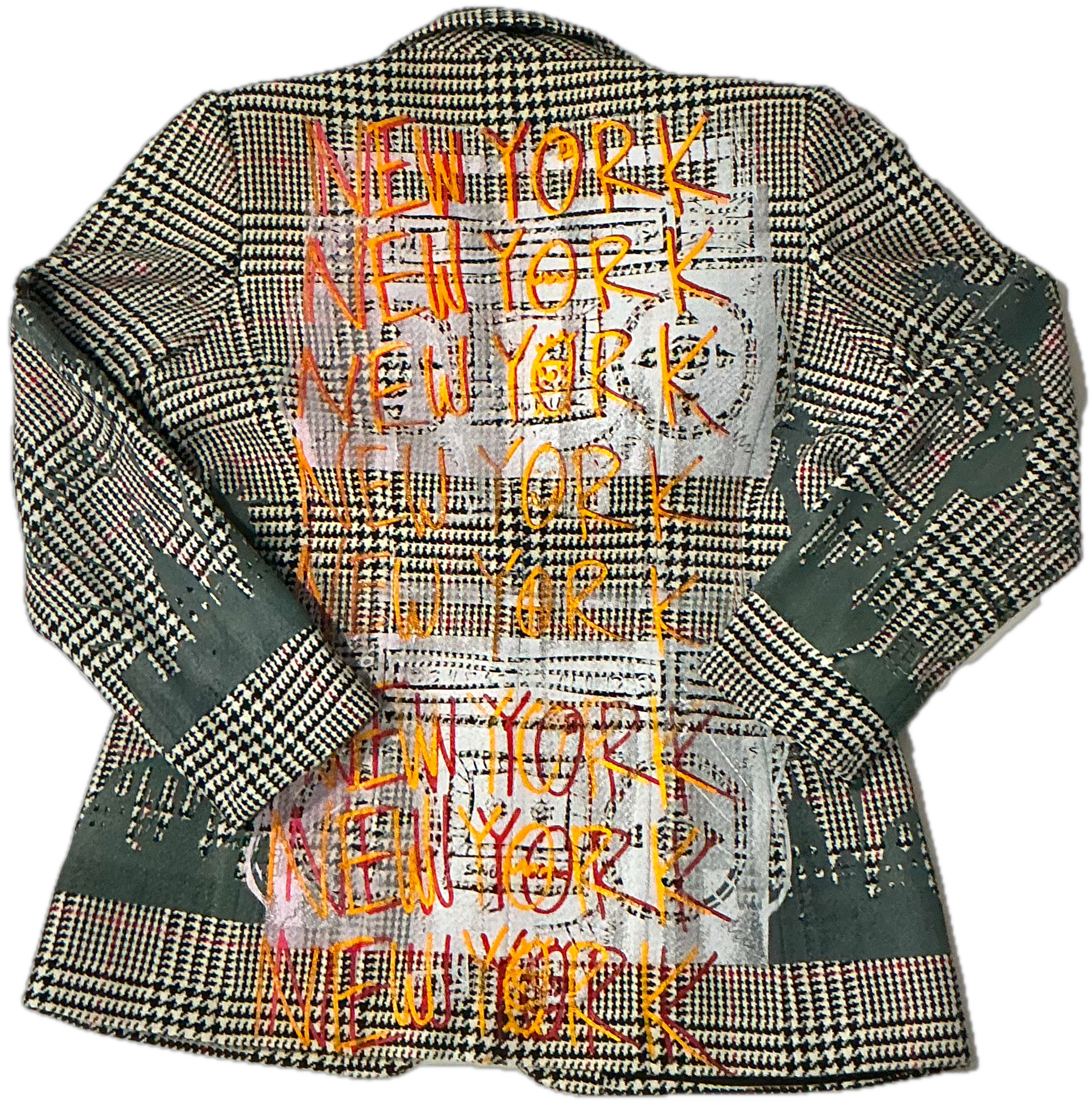 This is a one of a kind piece of clothing that has New York and the statue of liberty printed all over the garment.