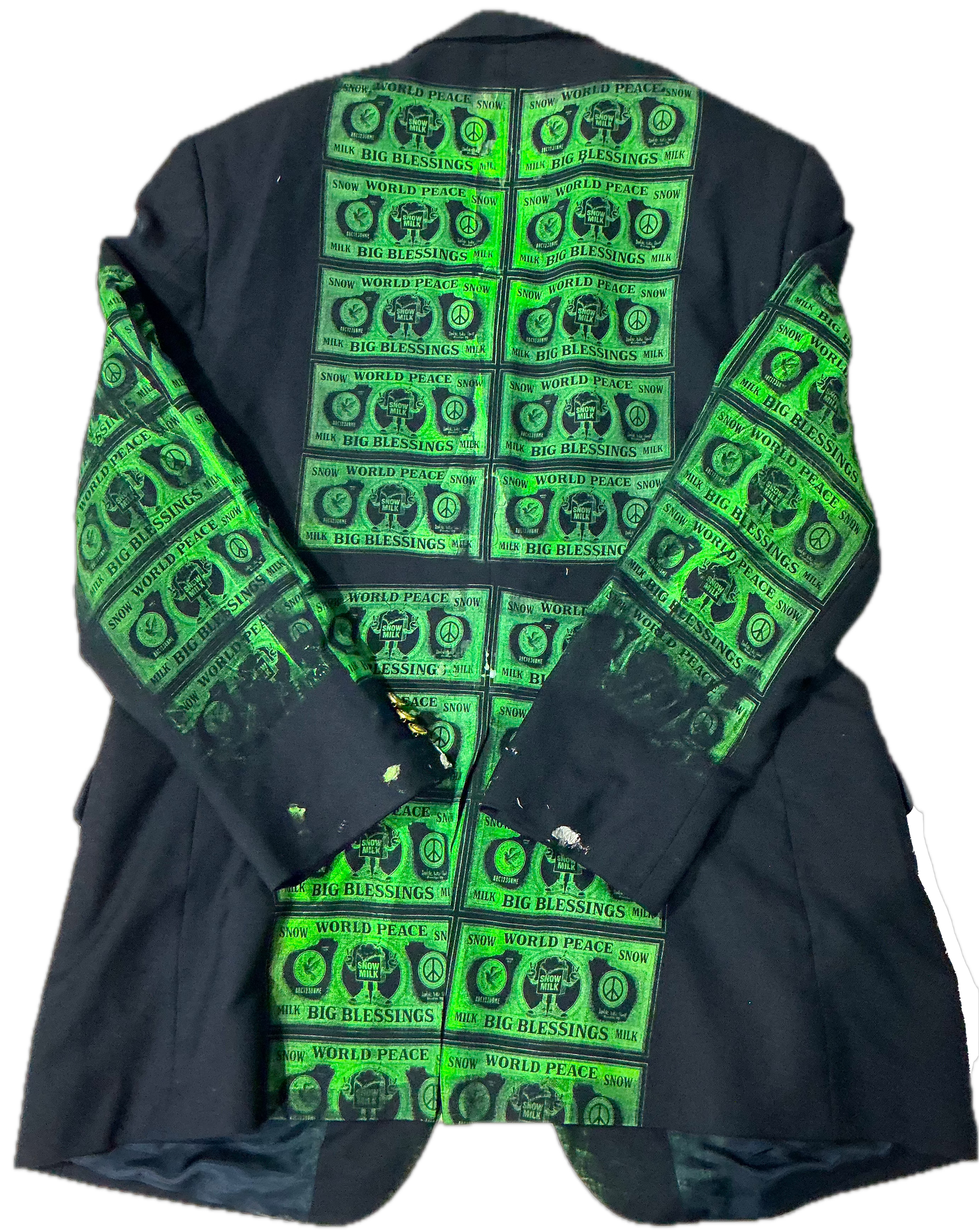 This is a one of a kind piece of clothing that has Big Blessings Bucks, Snow Milk and a special message printed all over the garment.