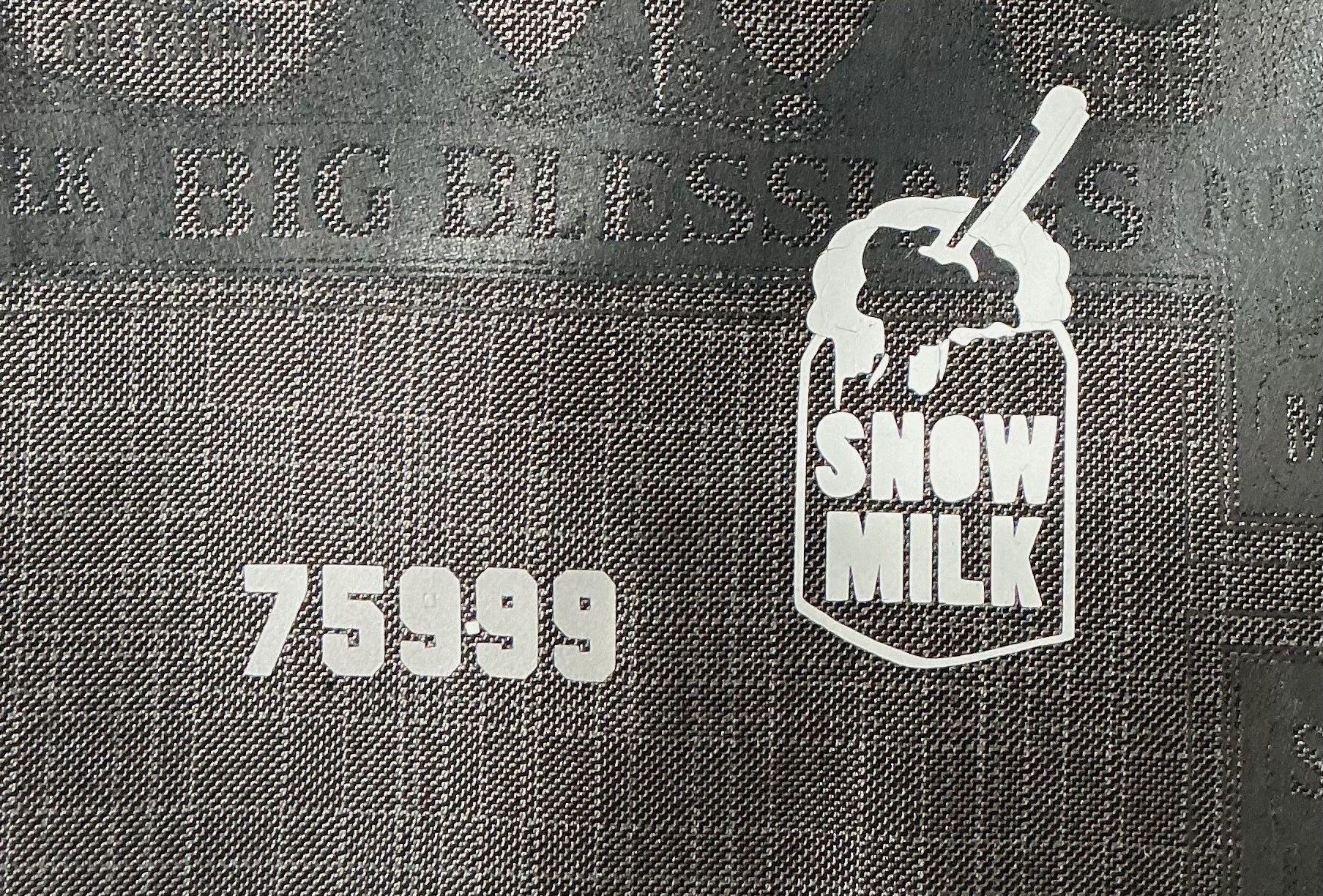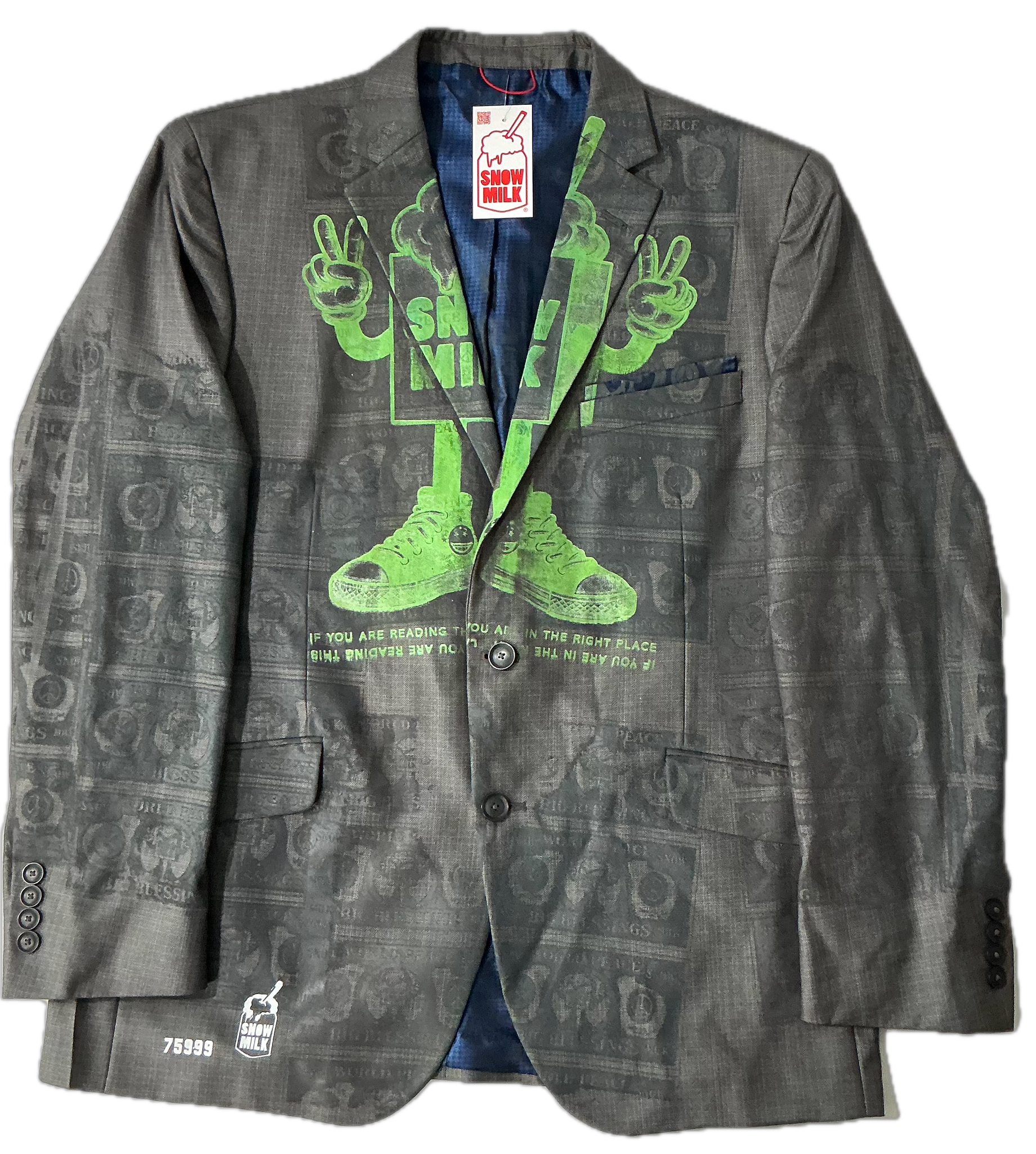 This is a one of a kind piece of clothing that has Big Blessings Bucks, Snow Milk and a special message printed all over the garment.
