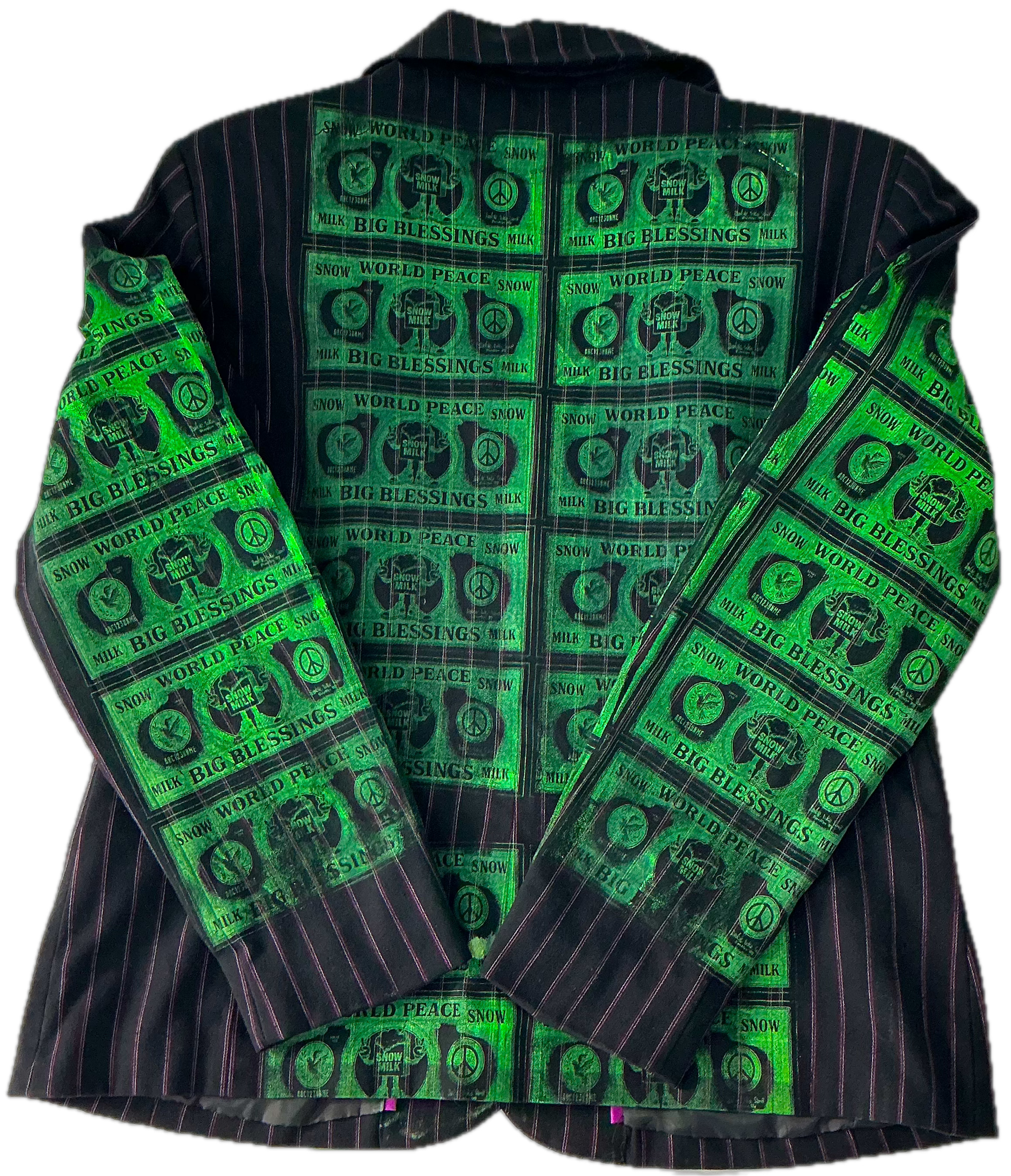 This is a one of a kind piece of clothing that has Big Blessings Bucks, Snow Milk and a special message printed all over the garment.