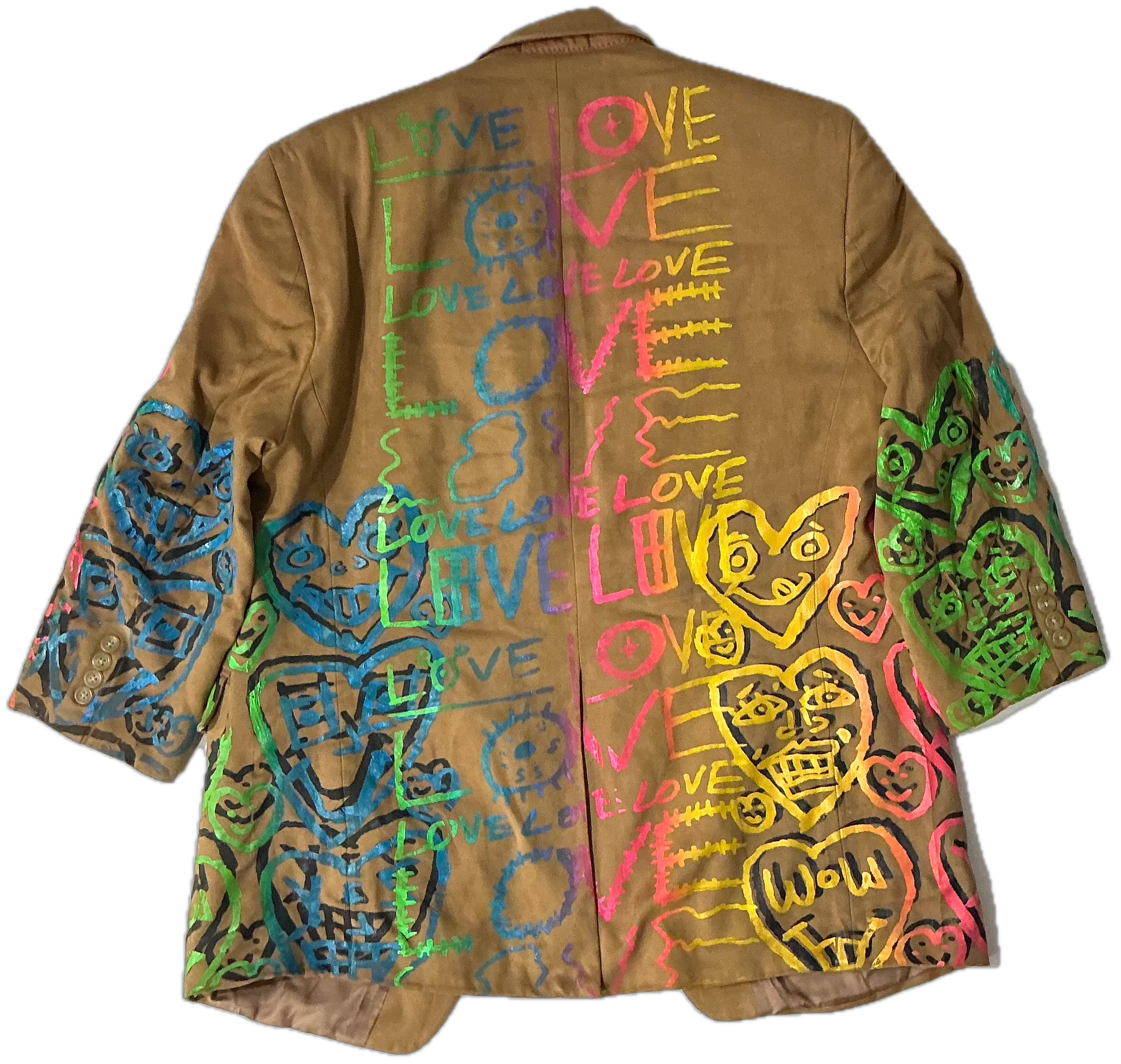 This is a one of a kind piece of clothing that has Hearts and Love printed all over.