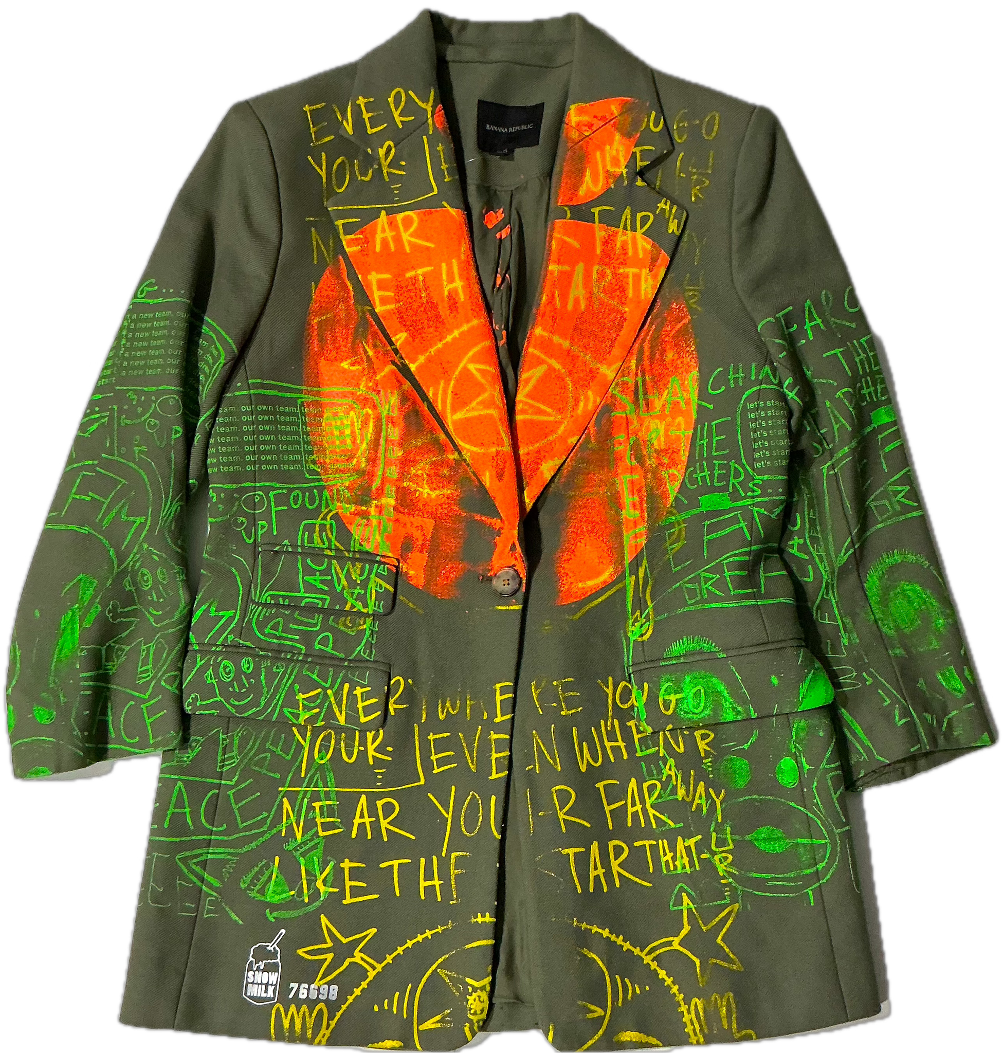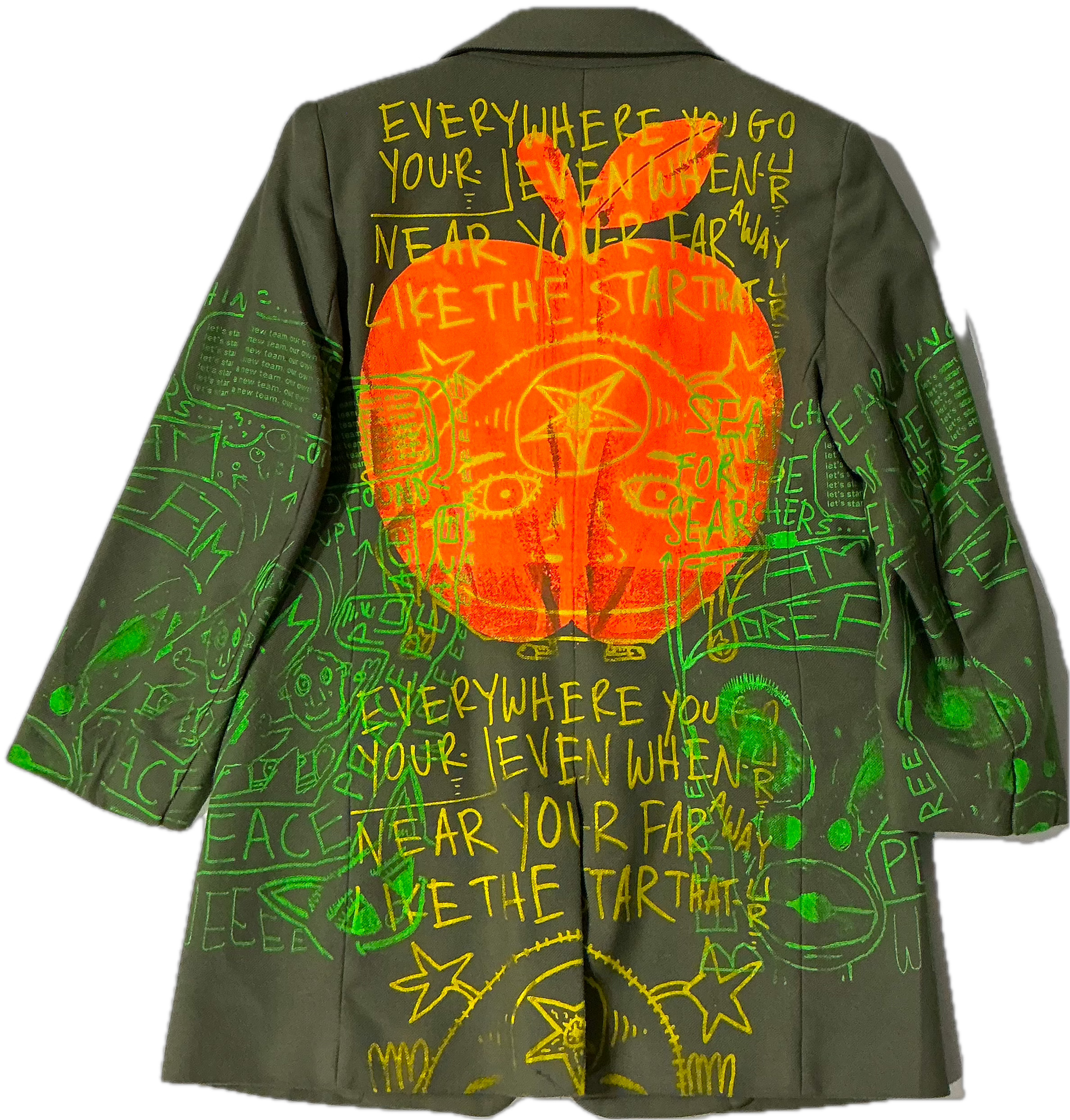 This is a one of a kind piece of clothing that has stars and a drawing of "Star That You Are" printed all over.