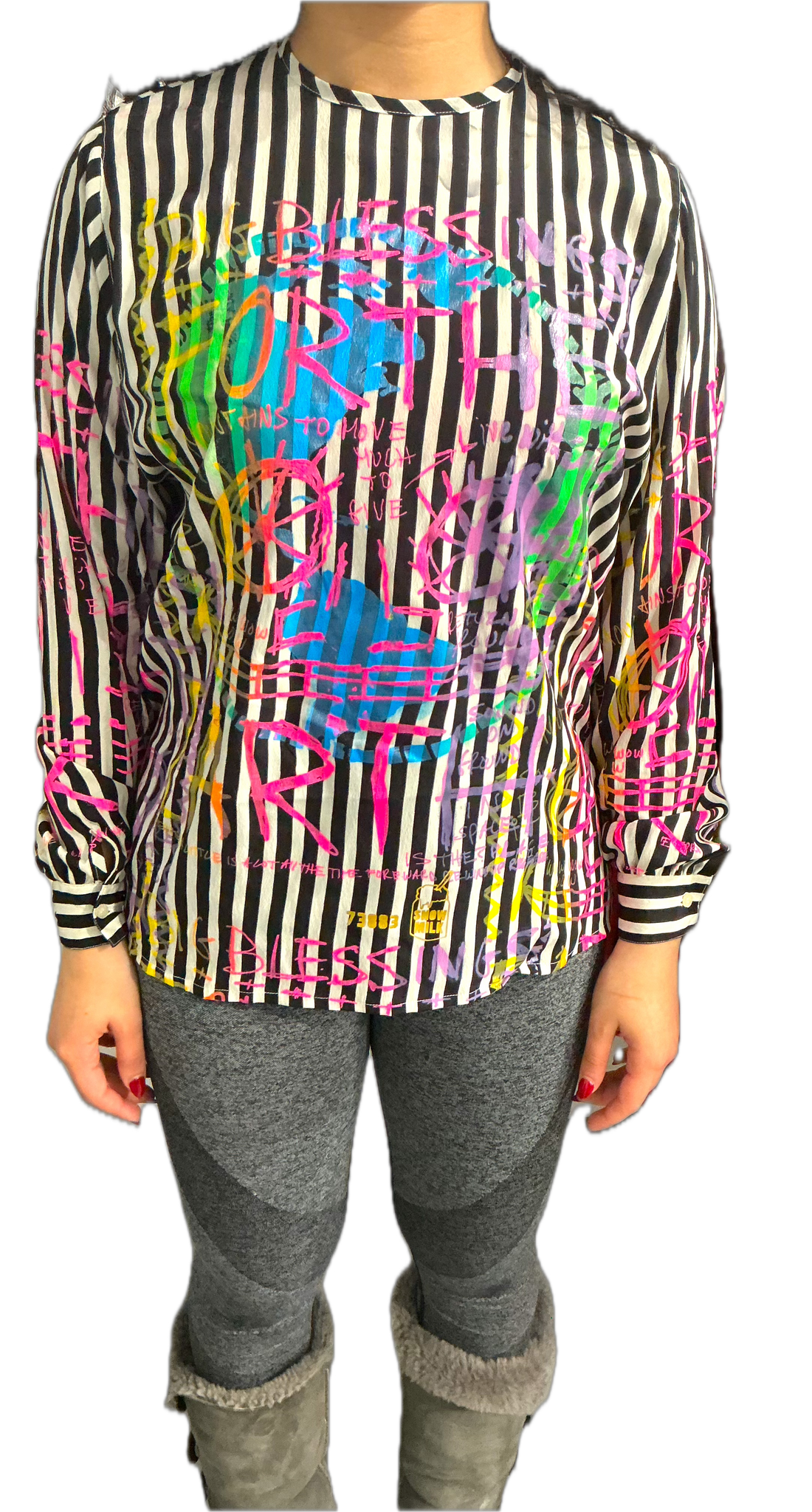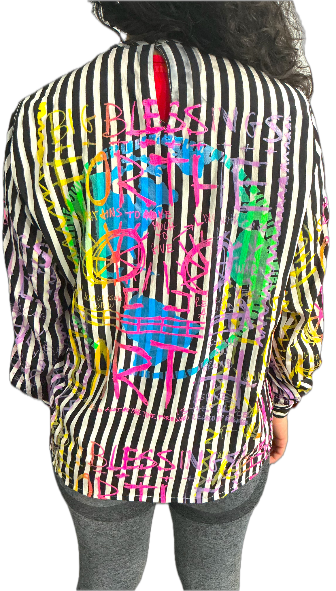 This is a one of a kind pieces of clothing that has the page of blessings printed all over.