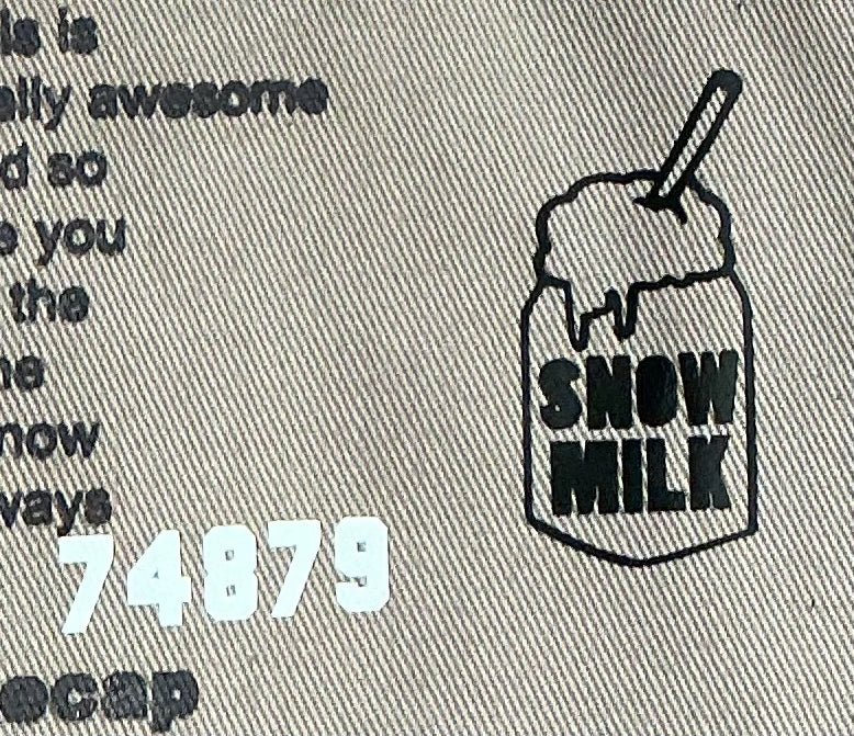 This is a one of a kind piece of clothing has the page of kindness with the snow milk 3 star smile printed all over.