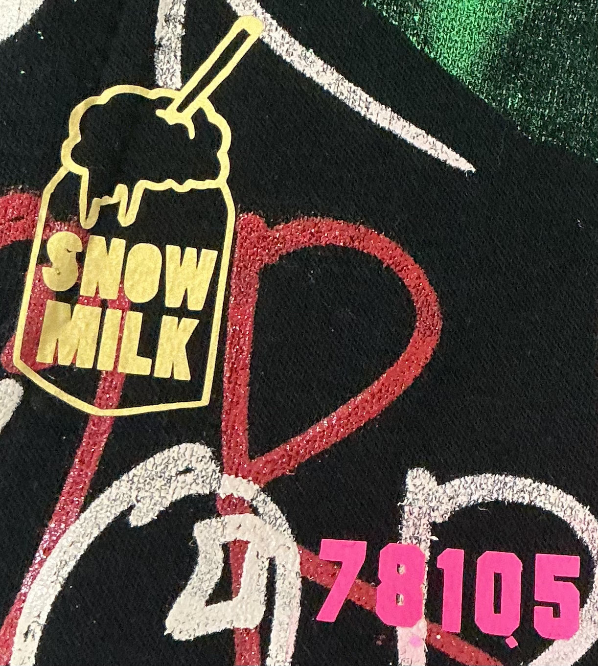 This is a one of a kind piece of thrifted clothing that has a big apple, New York, and the statue of liberty printed all over the garment.
