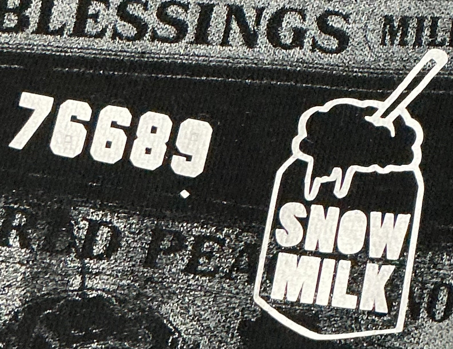 This is a one of a kind piece of clothing that has Big Blessings Bucks, Snow Milk and a special message printed all over the garment.