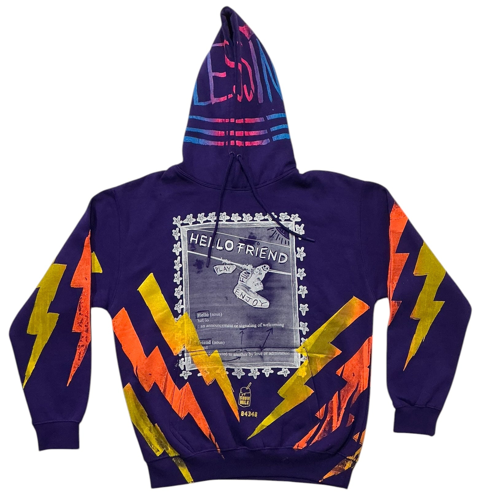 This is a one of a kind piece of clothing printed with the hello friend and blessings all over.