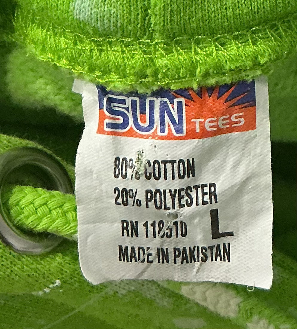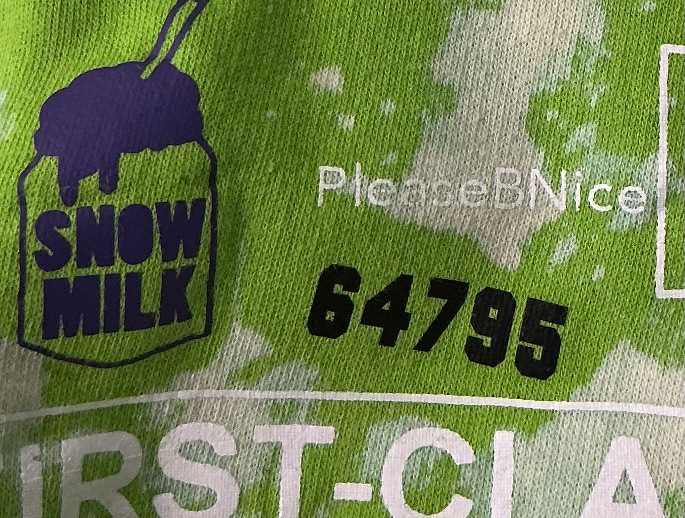 This is a one of a kind piece of clothing printed with the positive shipping label all over.