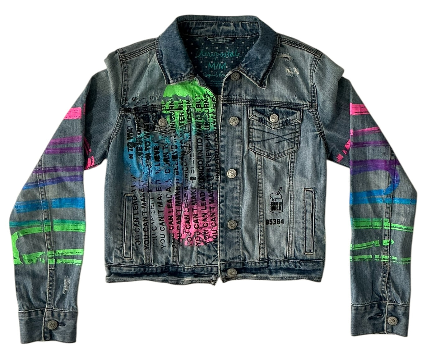 This is a one of a kind piece of clothing that has Unicorns to Water throughout the garment.