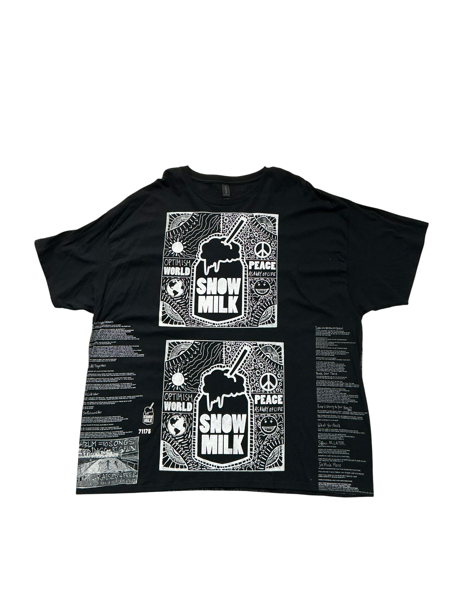 This is a one of a kind piece of clothing that is a wearable album titled "Optimism World Peace As A Way Of Life (The Wearable Album)".