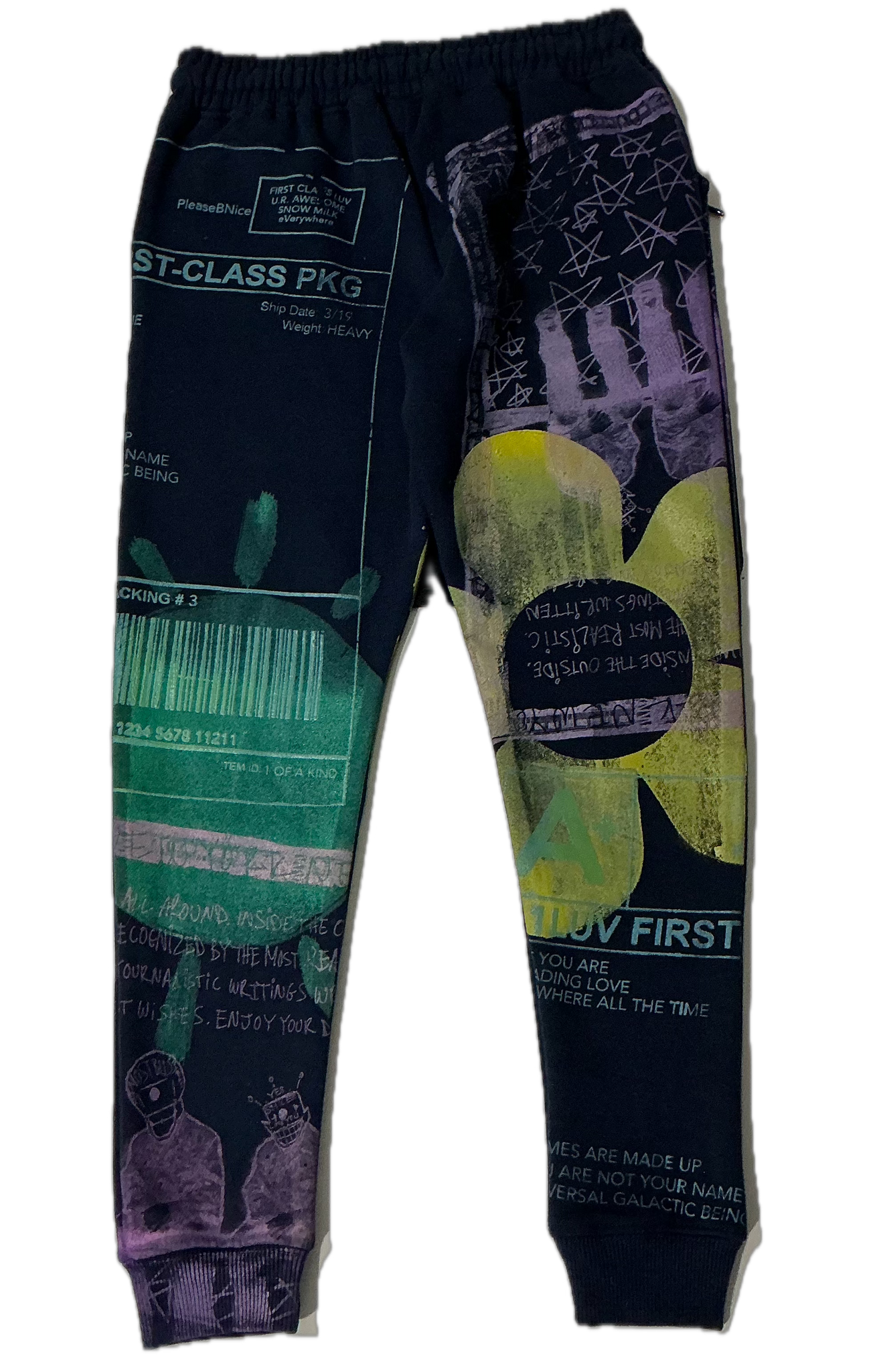 This is a one of a kind piece of clothing printed with the positive shipping label all over.