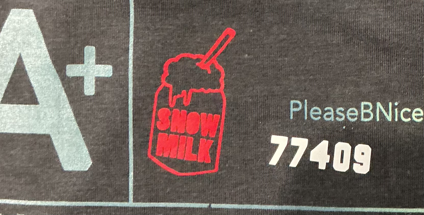 This is a one of a kind piece of clothing printed with a composition book and the positive shipping label all over.