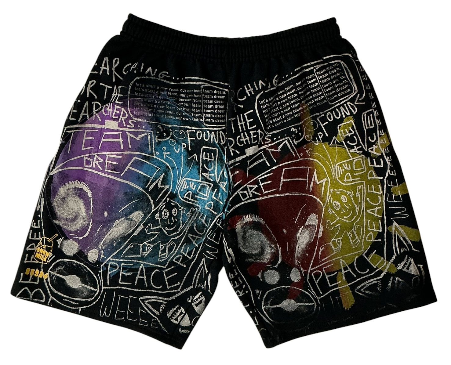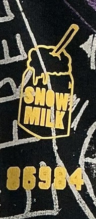 This is a one of a kind piece of clothing that has a happy character crossing the street and a special message printed on it.