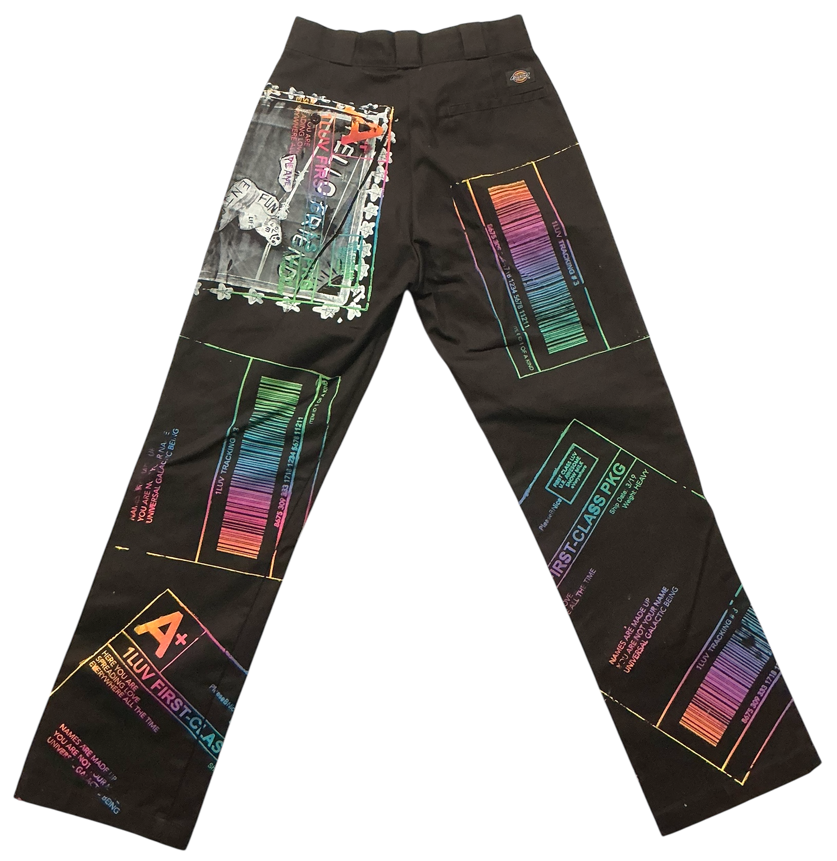 This is a one of a kind piece of clothing printed with the positive shipping label all over.