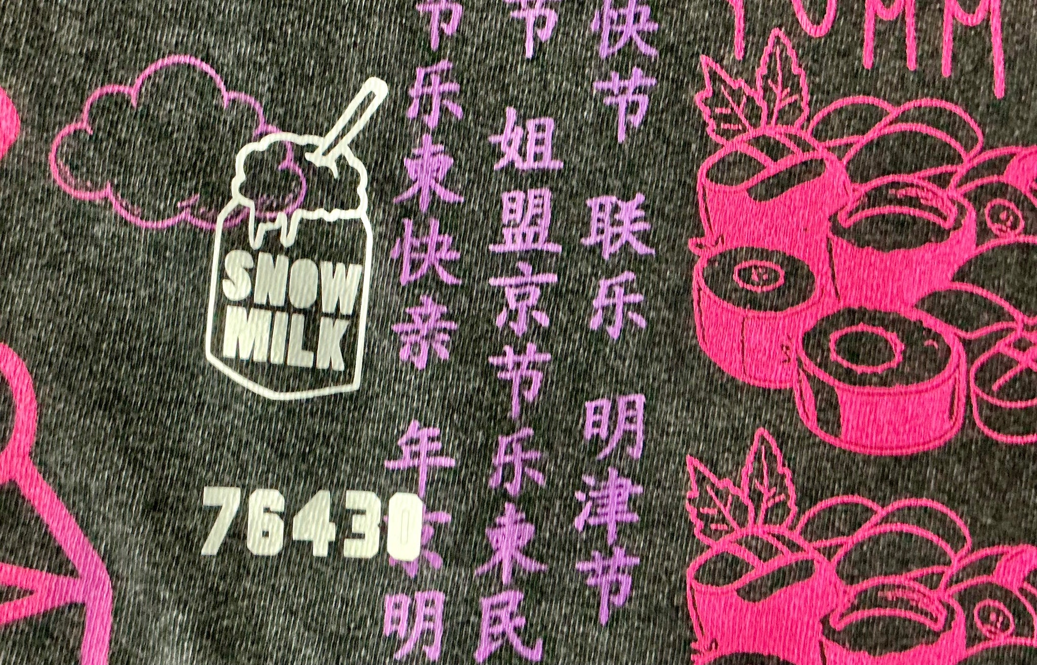 This design has a cute anime snow milk with Japanese writing and a message printed all over