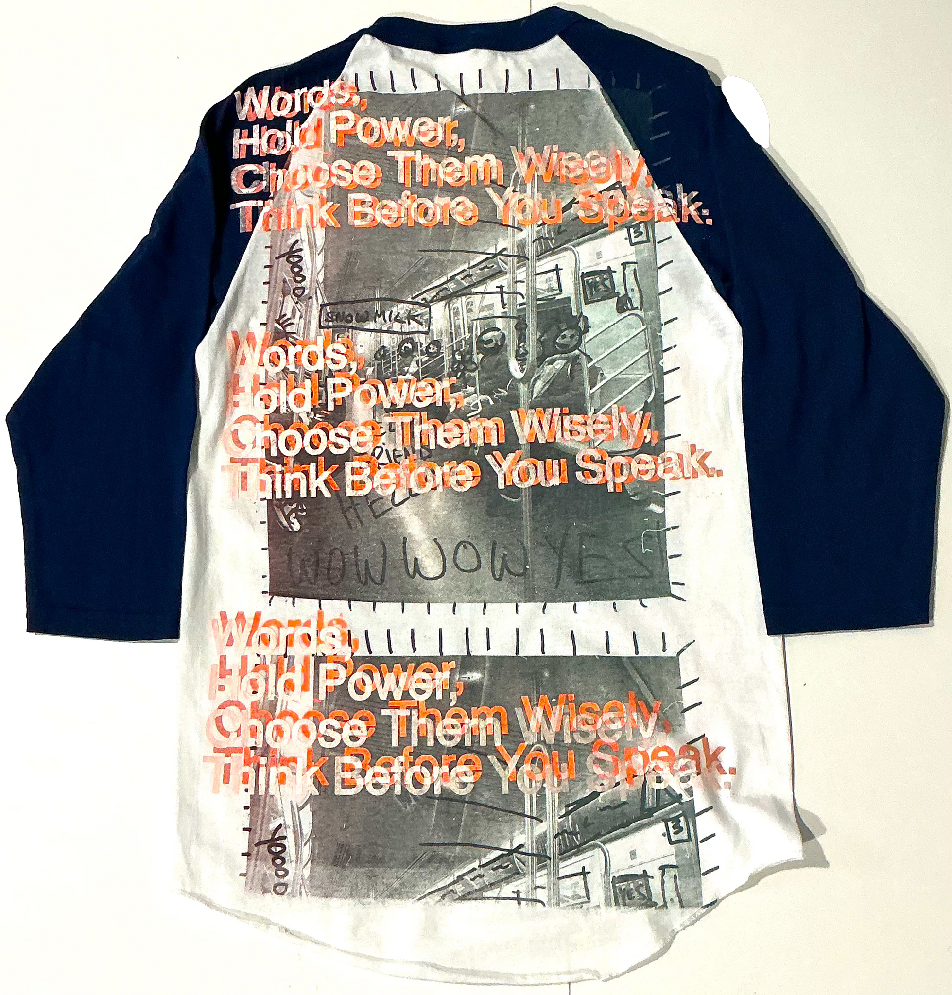 This is a one of a kind piece of clothing that has Words Hold Power printed all over the garment.