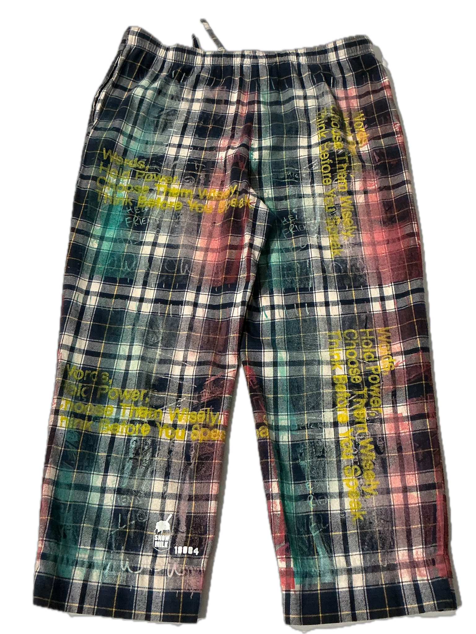 This is a one of a kind piece of clothing that has Words Hold Power printed all over the garment.