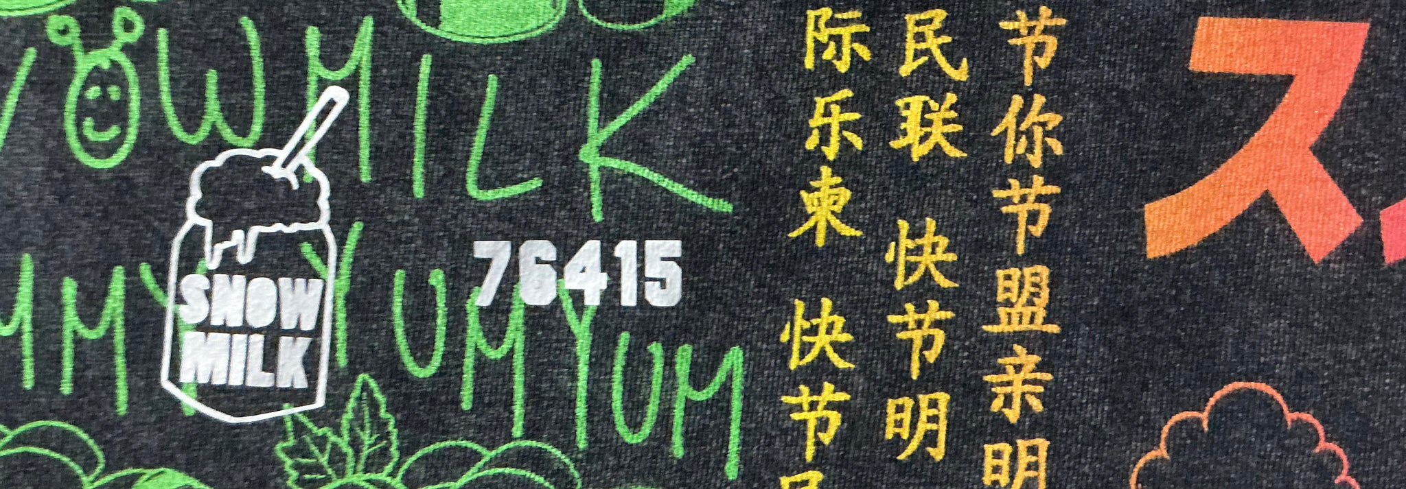 This design has a cute anime snow milk with Japanese writing and a message printed all over