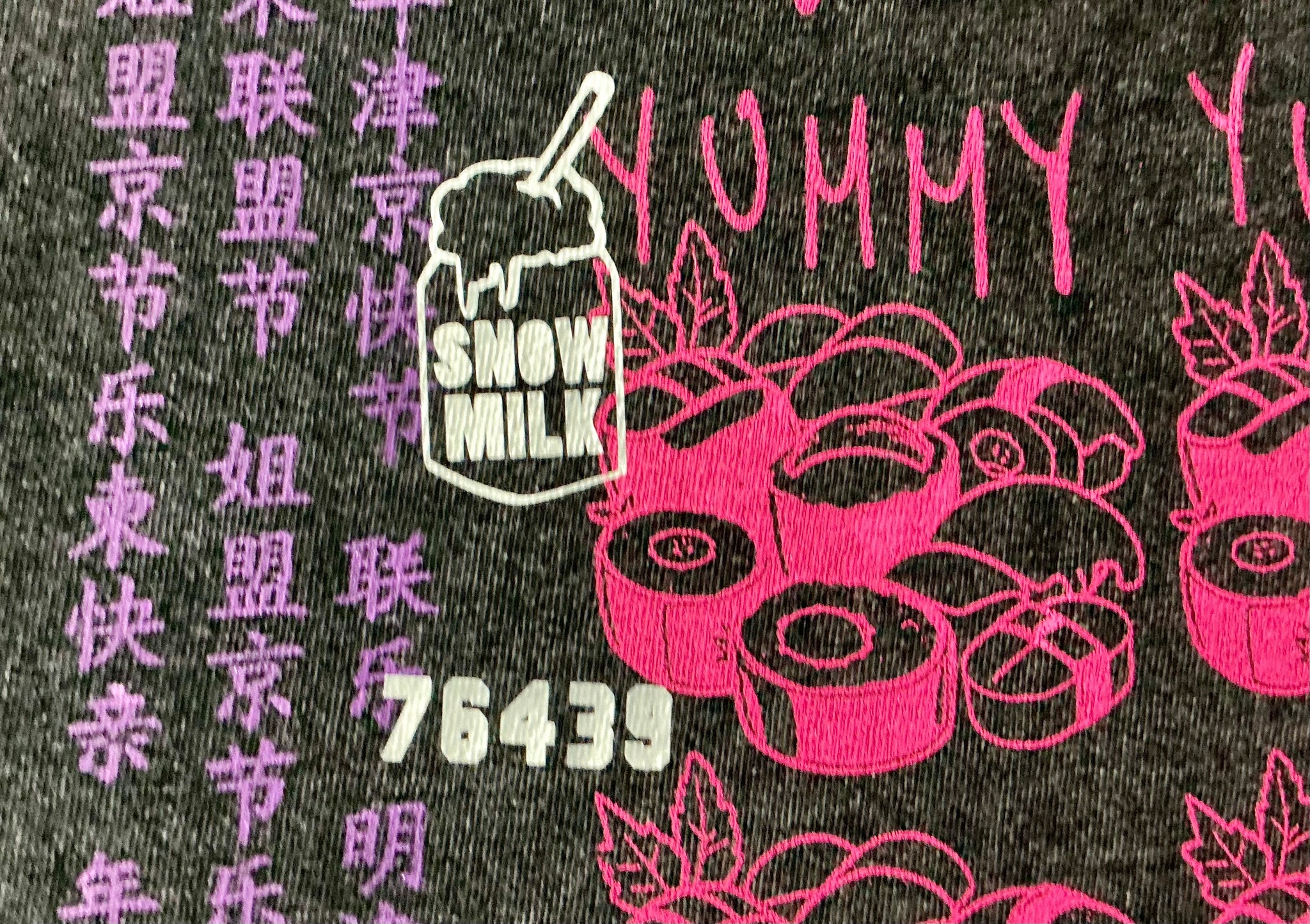 This design has a cute anime snow milk with Japanese writing and a message printed all over