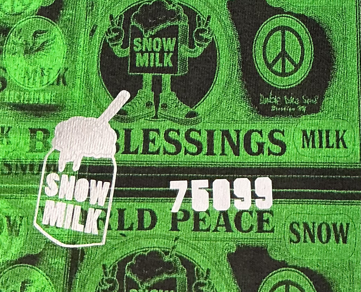 This is a one of a kind piece of clothing that has Big Blessings Bucks, Snow Milk and a special message printed all over the garment.