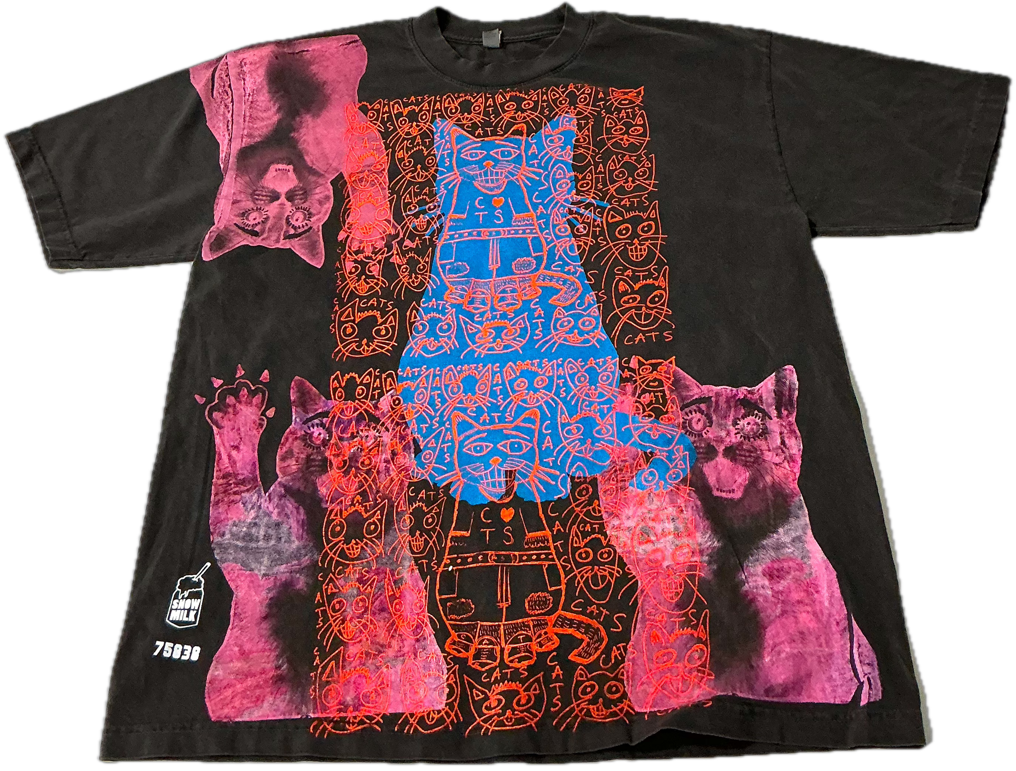This is a one of a kind piece of clothing that has cats & dogs printed all over the garment.
