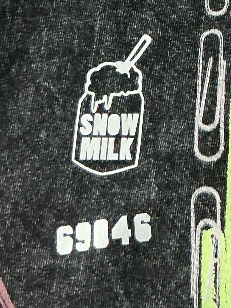 This is a one of a kind piece of clothing that has kids with luchador masks, paperclips, and a special message printed all over.