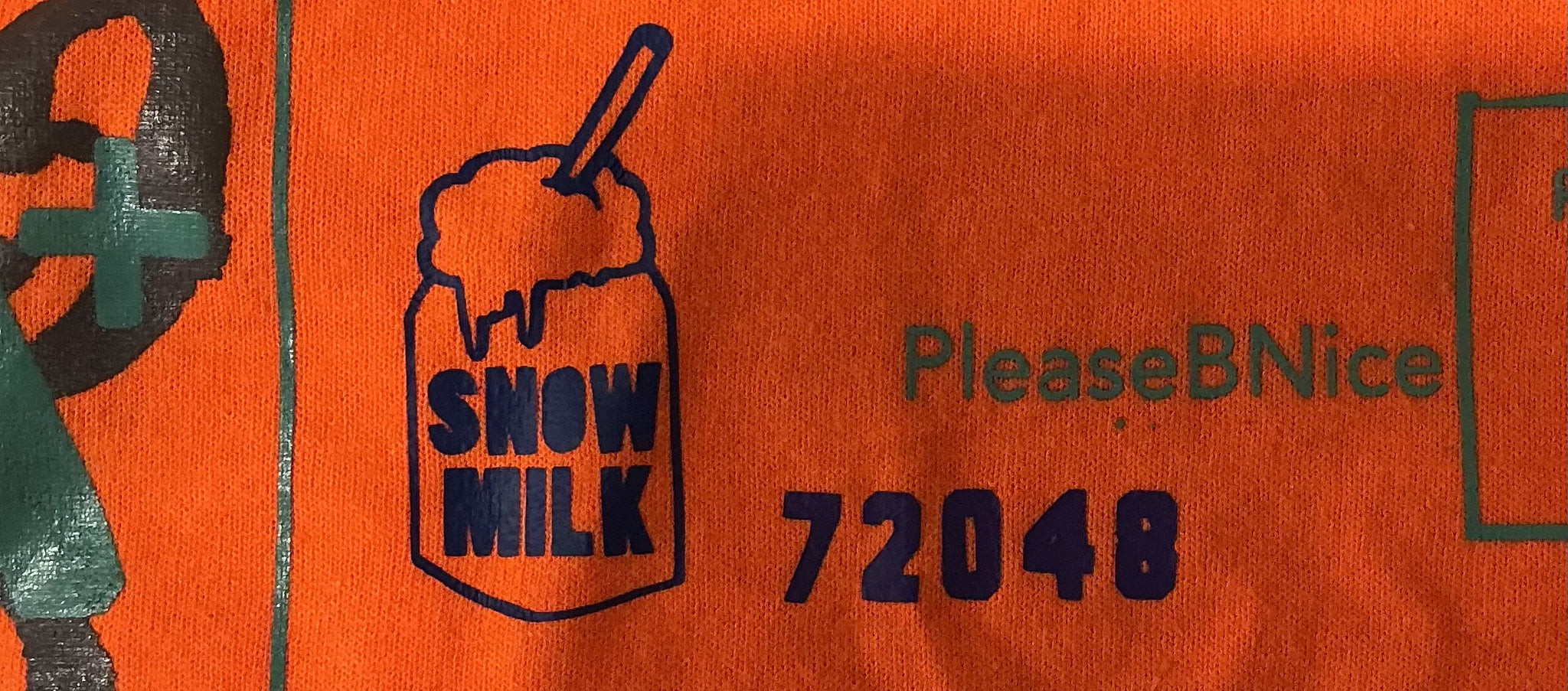 This is a one of a kind piece of clothing printed with a composition book and the positive shipping label all over.