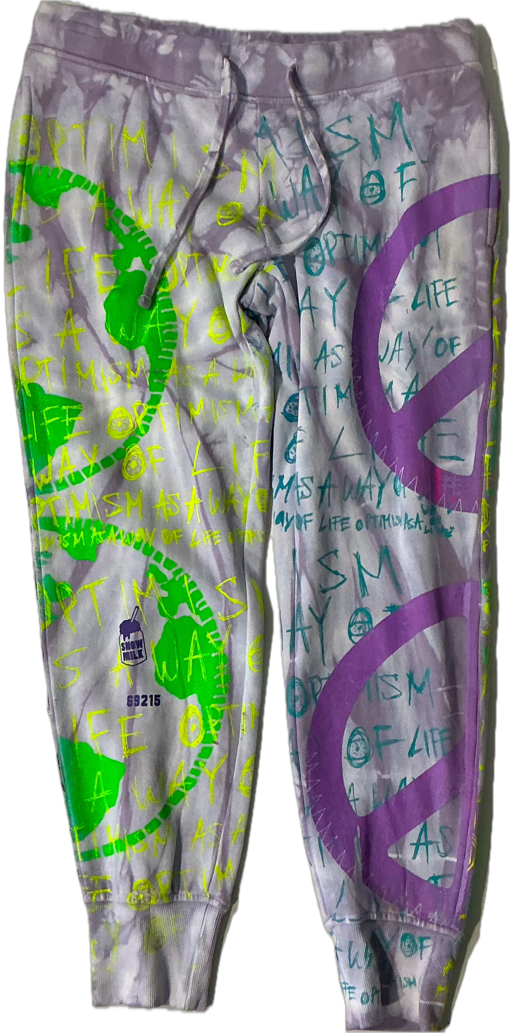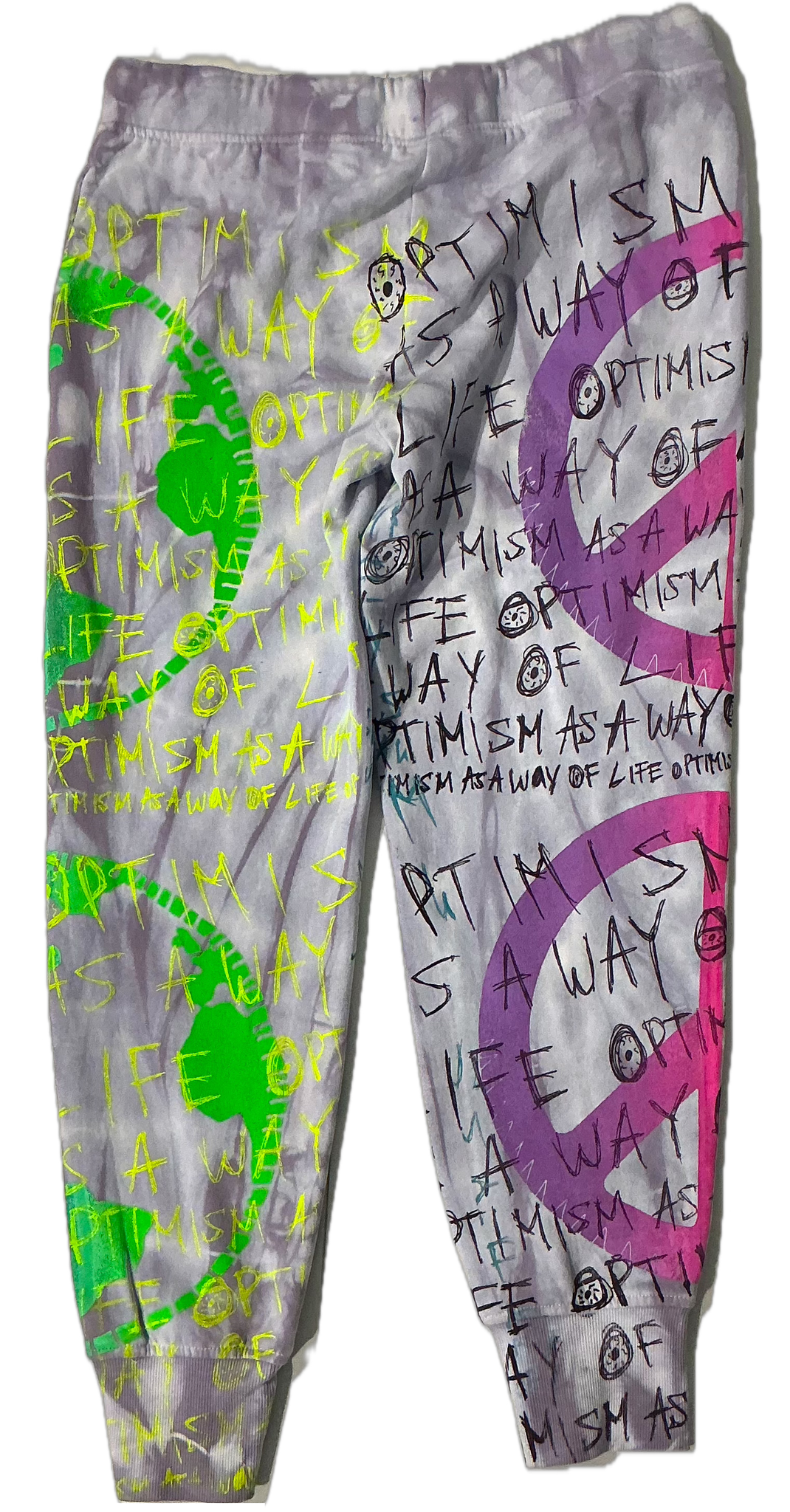 This is a one of a kind piece of clothing has a sun with optimism as a way of life printed all over.