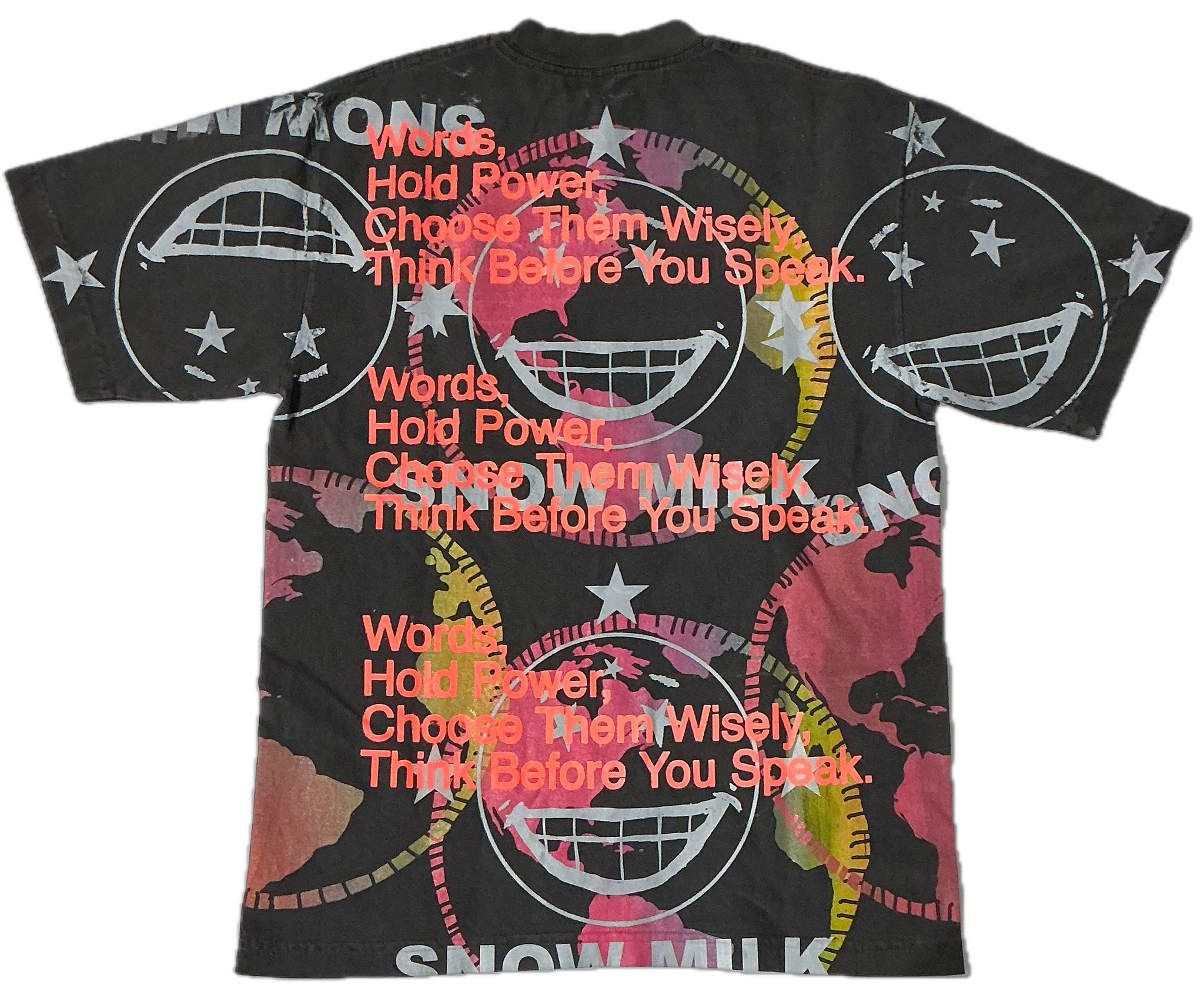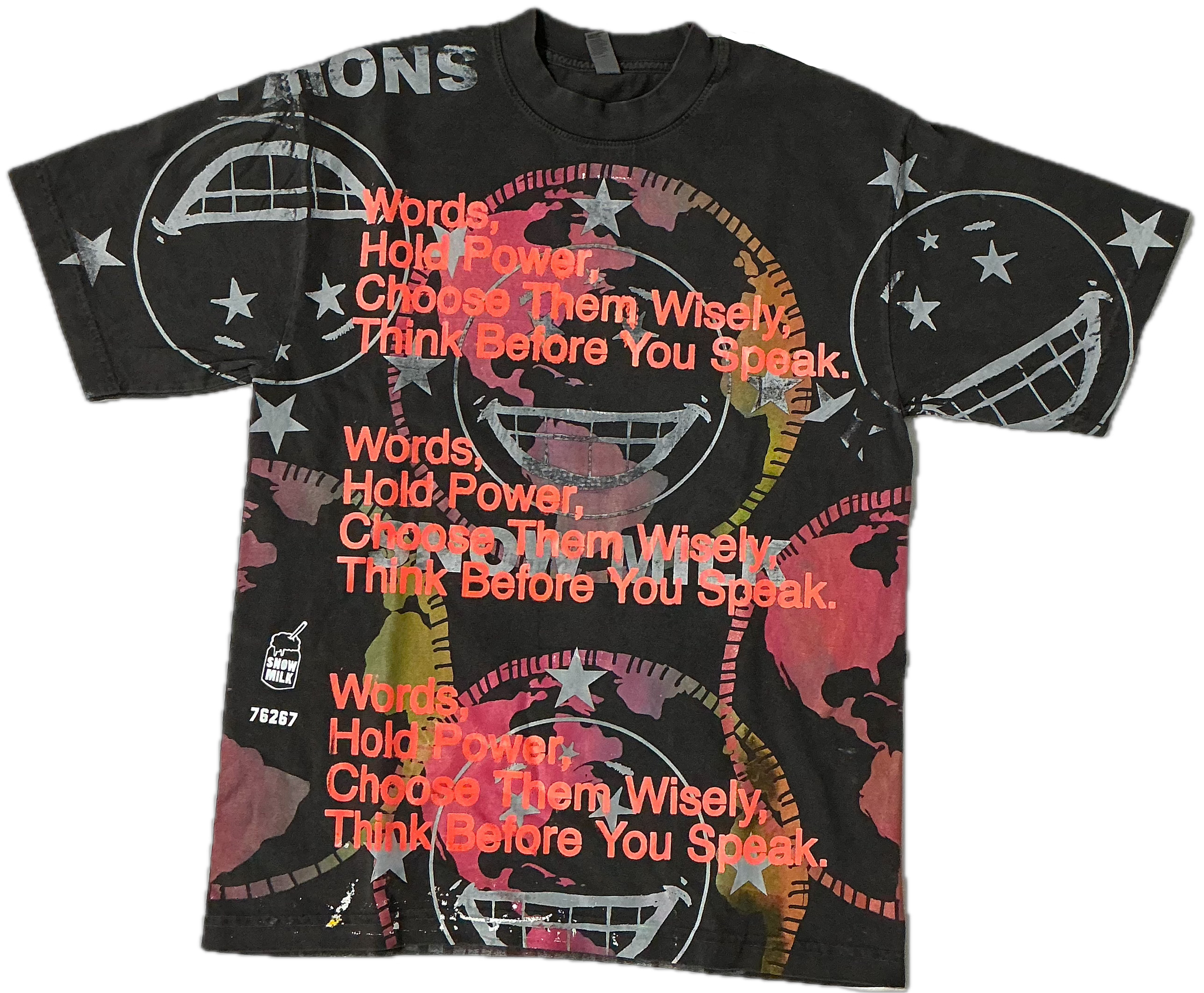 This is a one of a kind piece of clothing that has Words Hold Power printed all over the garment.