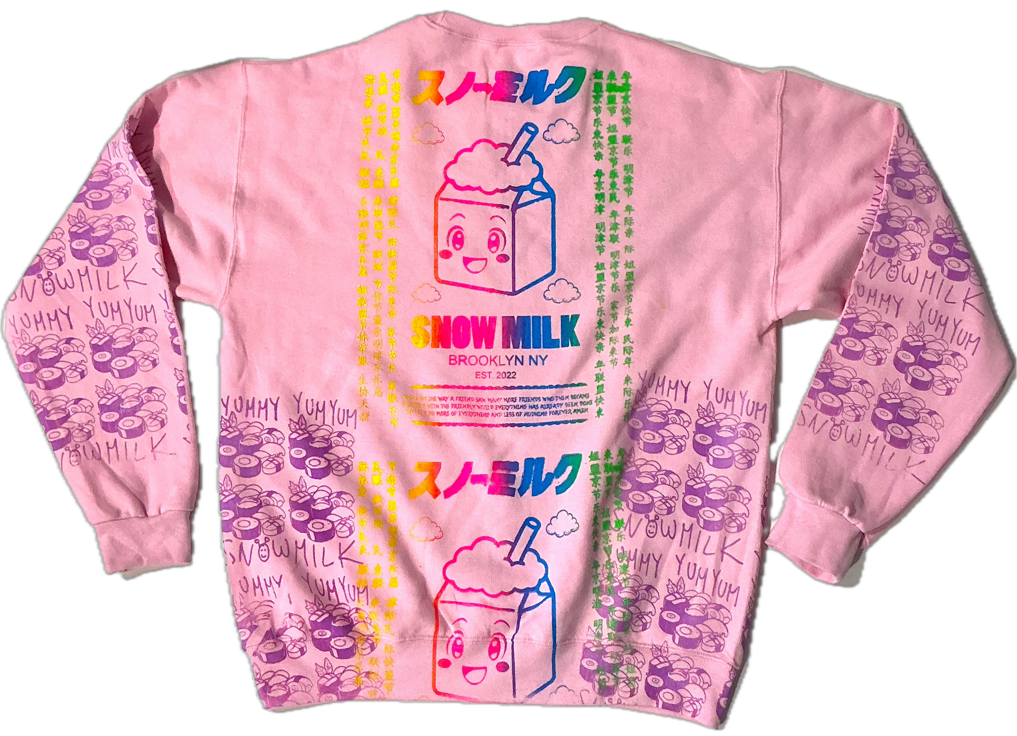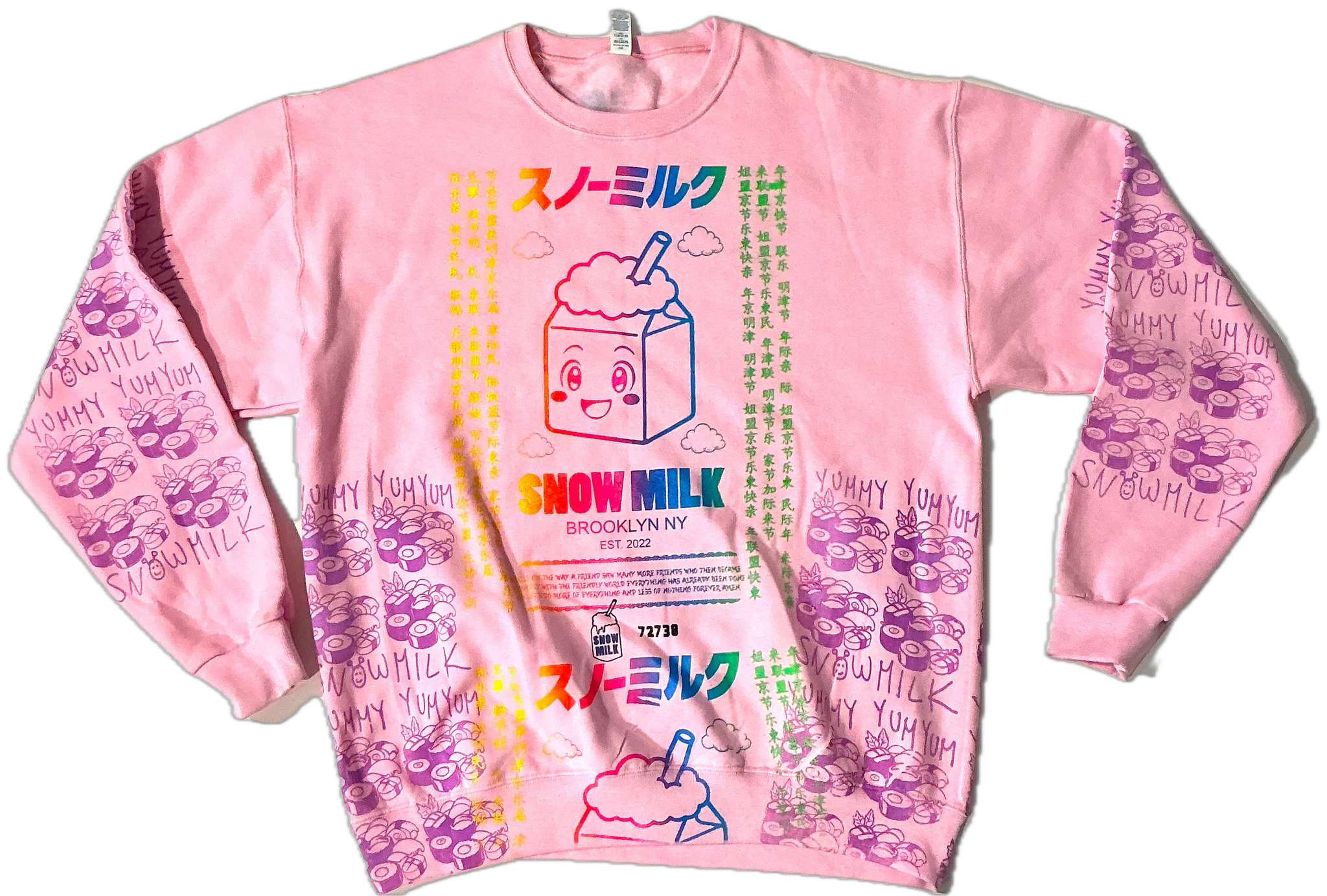 This design has a cute anime snow milk with Japanese writing and a message printed all over
