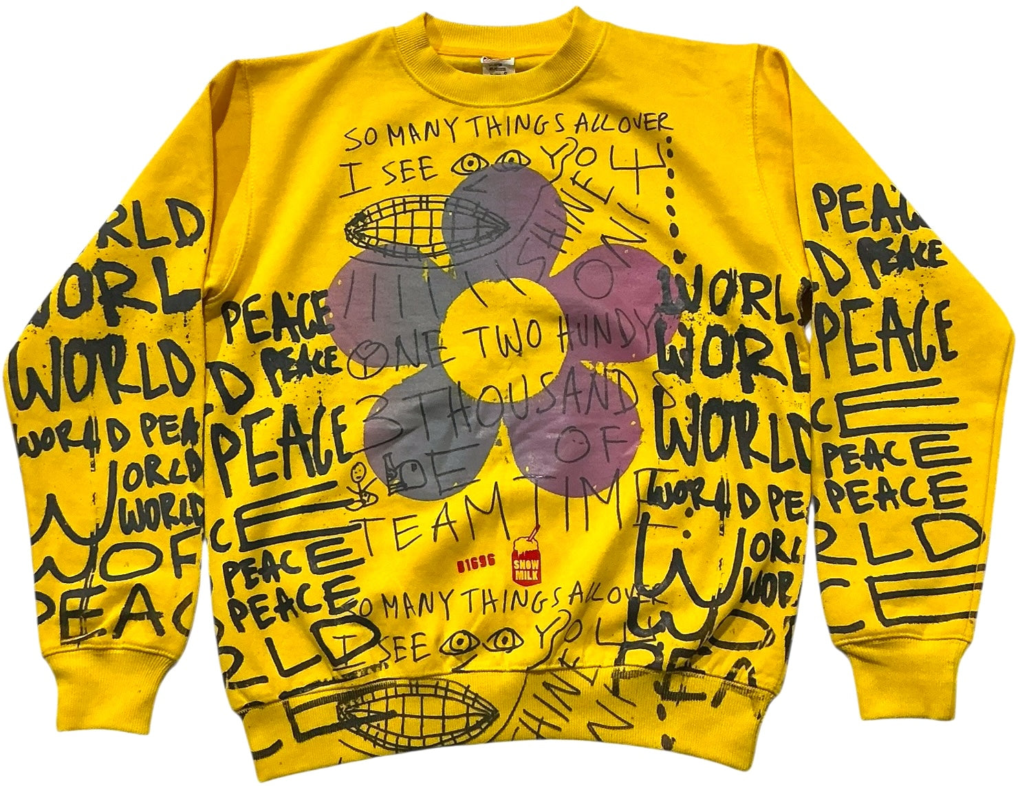This is a one of a kind piece of clothing has peace signs, world peace and a special drawing printed all over.