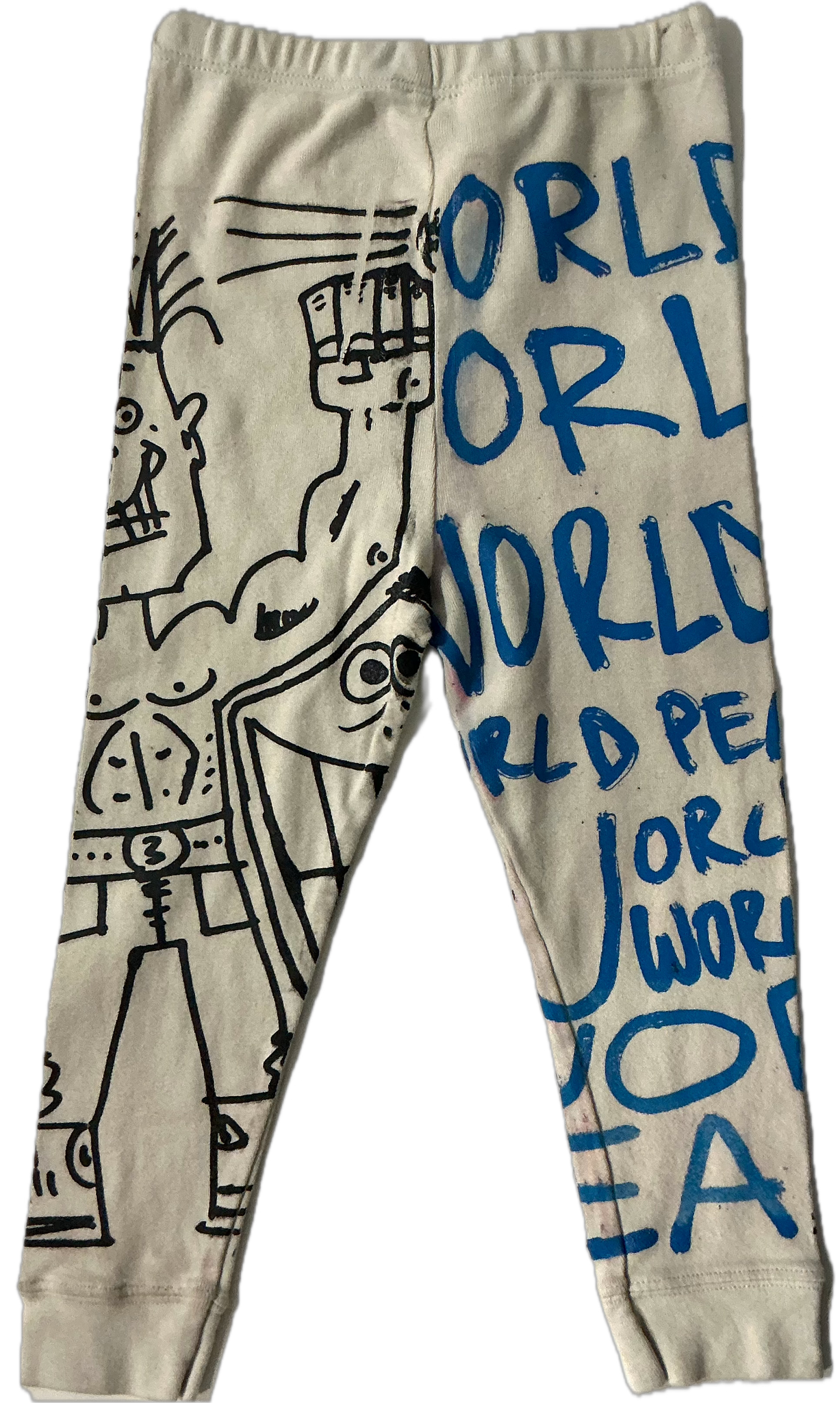This is a one of a kind piece of clothing has peace signs, world peace and a special drawing printed all over.