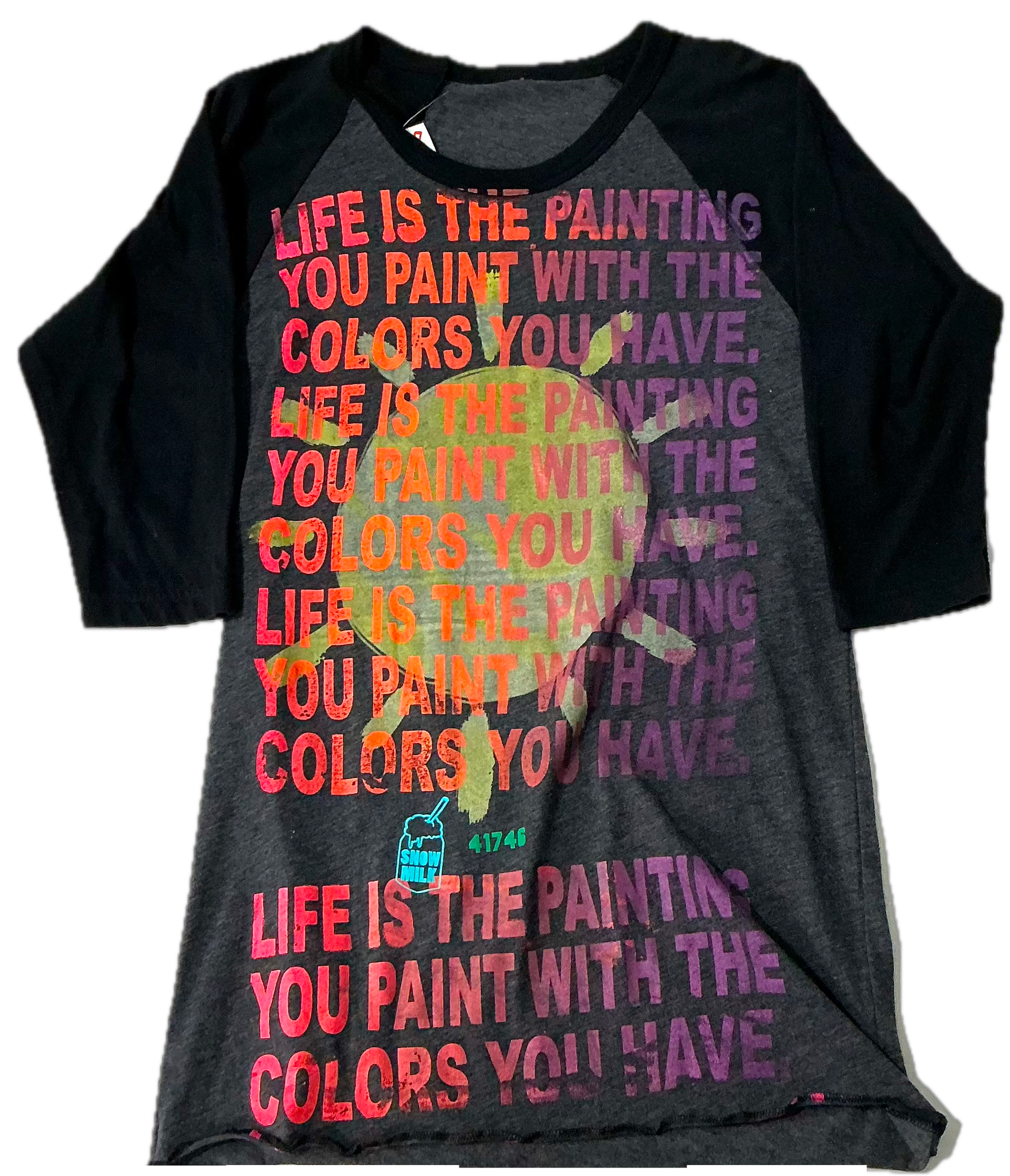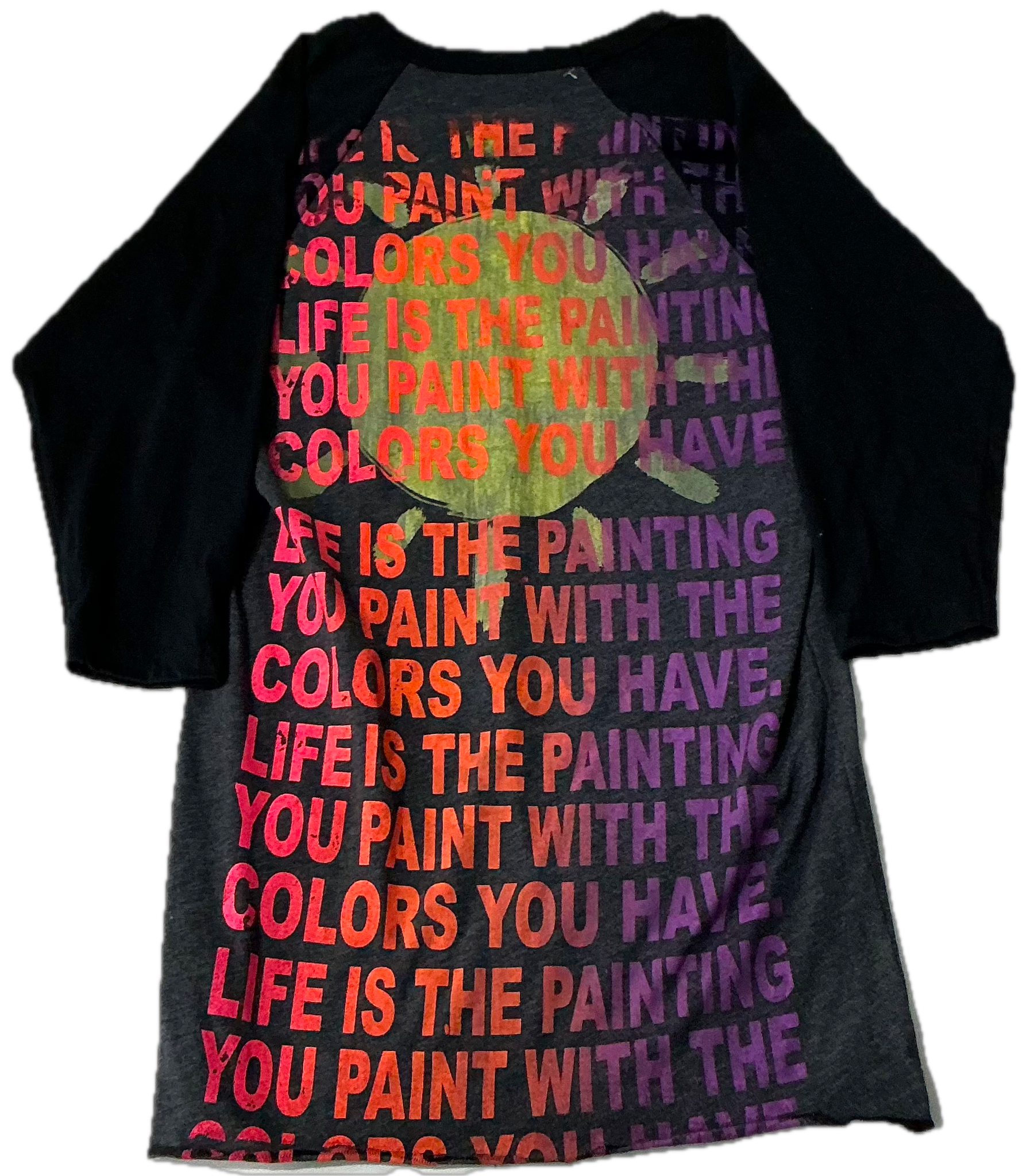 This is a one of a kind piece of clothing that has Life Is The Painting You Paint with optimism as a way of life printed all over.