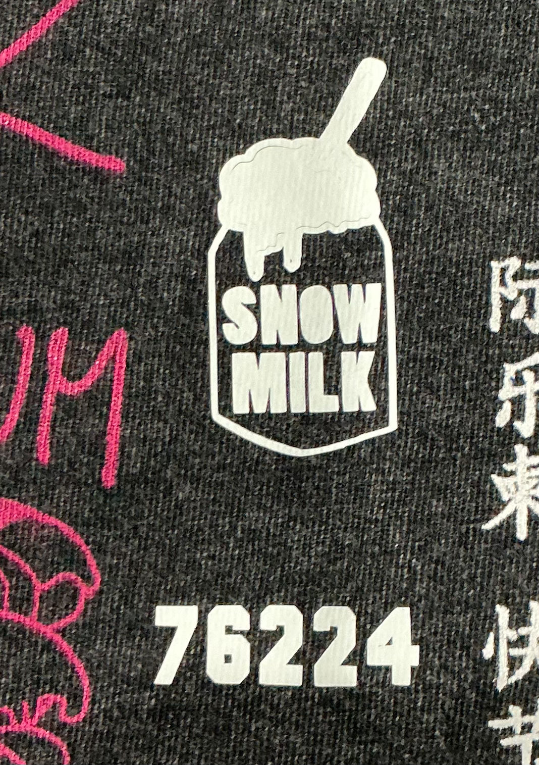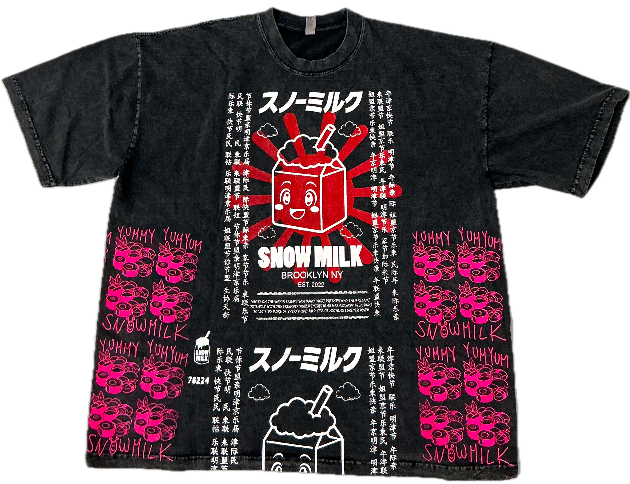 This design has a cute anime snow milk with Japanese writing and a message printed all over