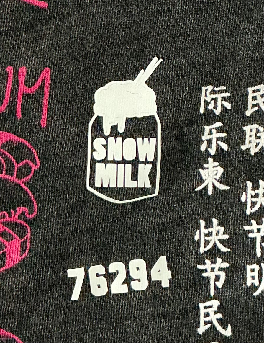 This design has a cute anime snow milk with Japanese writing and a message printed all over