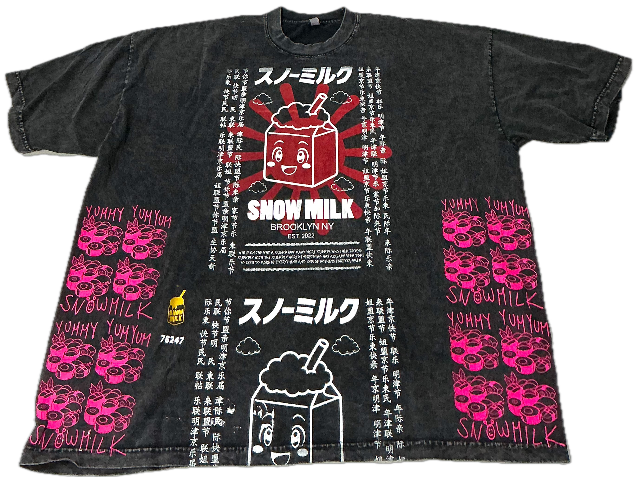 This design has a cute anime snow milk with Japanese writing and a message printed all over