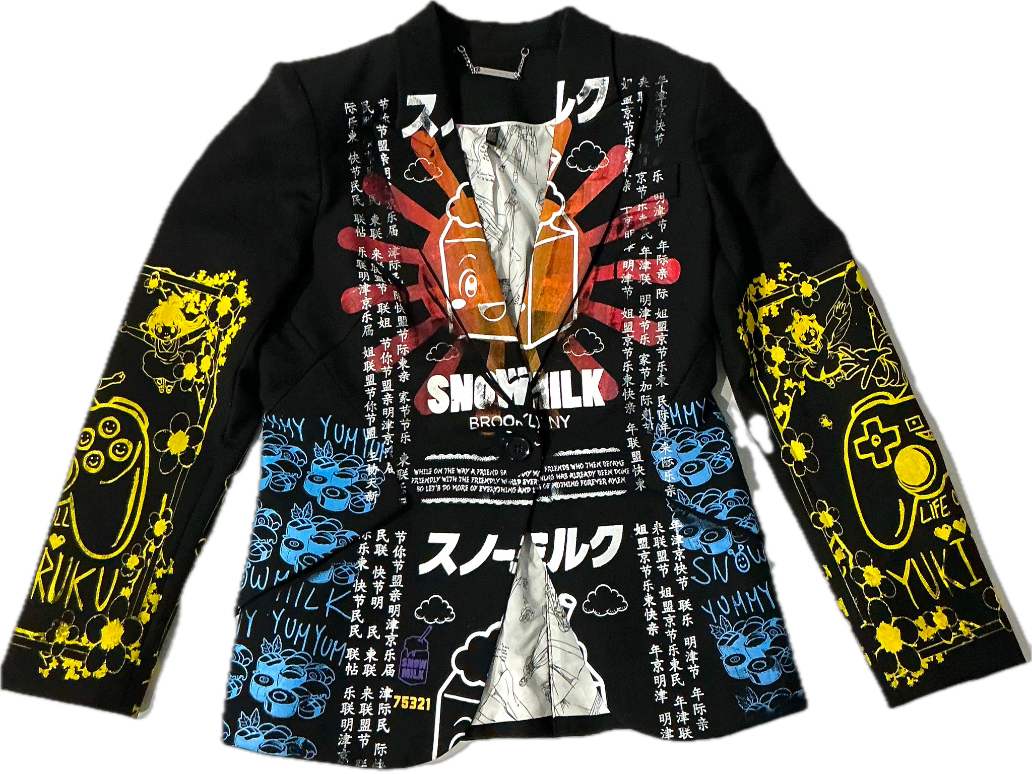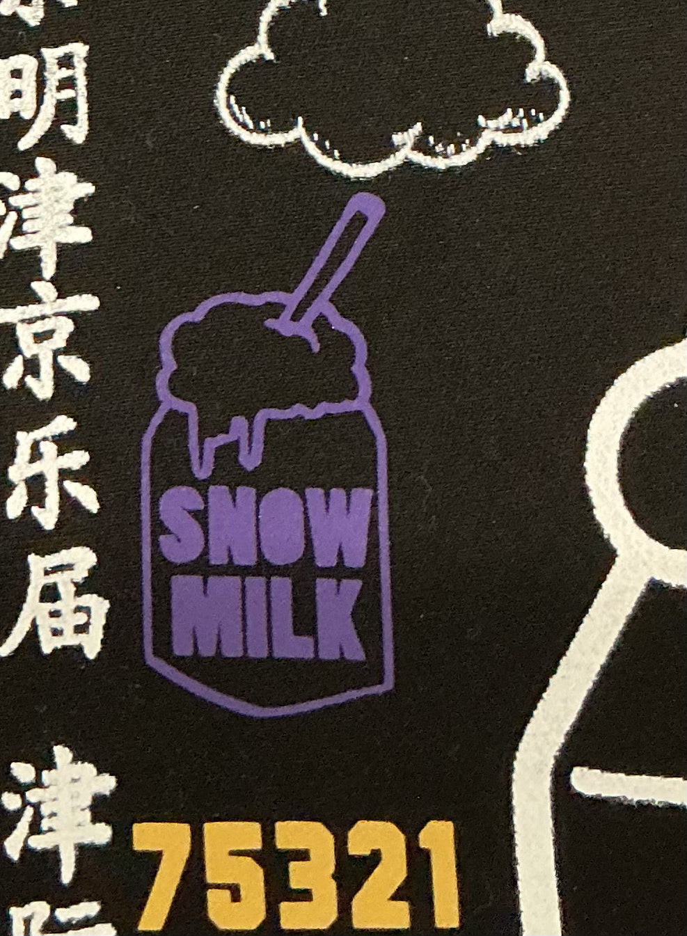 This design has a cute anime snow milk with Japanese writing and a message printed all over