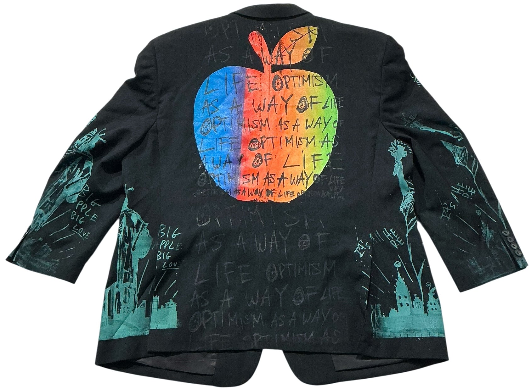 This is a one of a kind piece of clothing that has New York and the statue of liberty printed all over the garment.