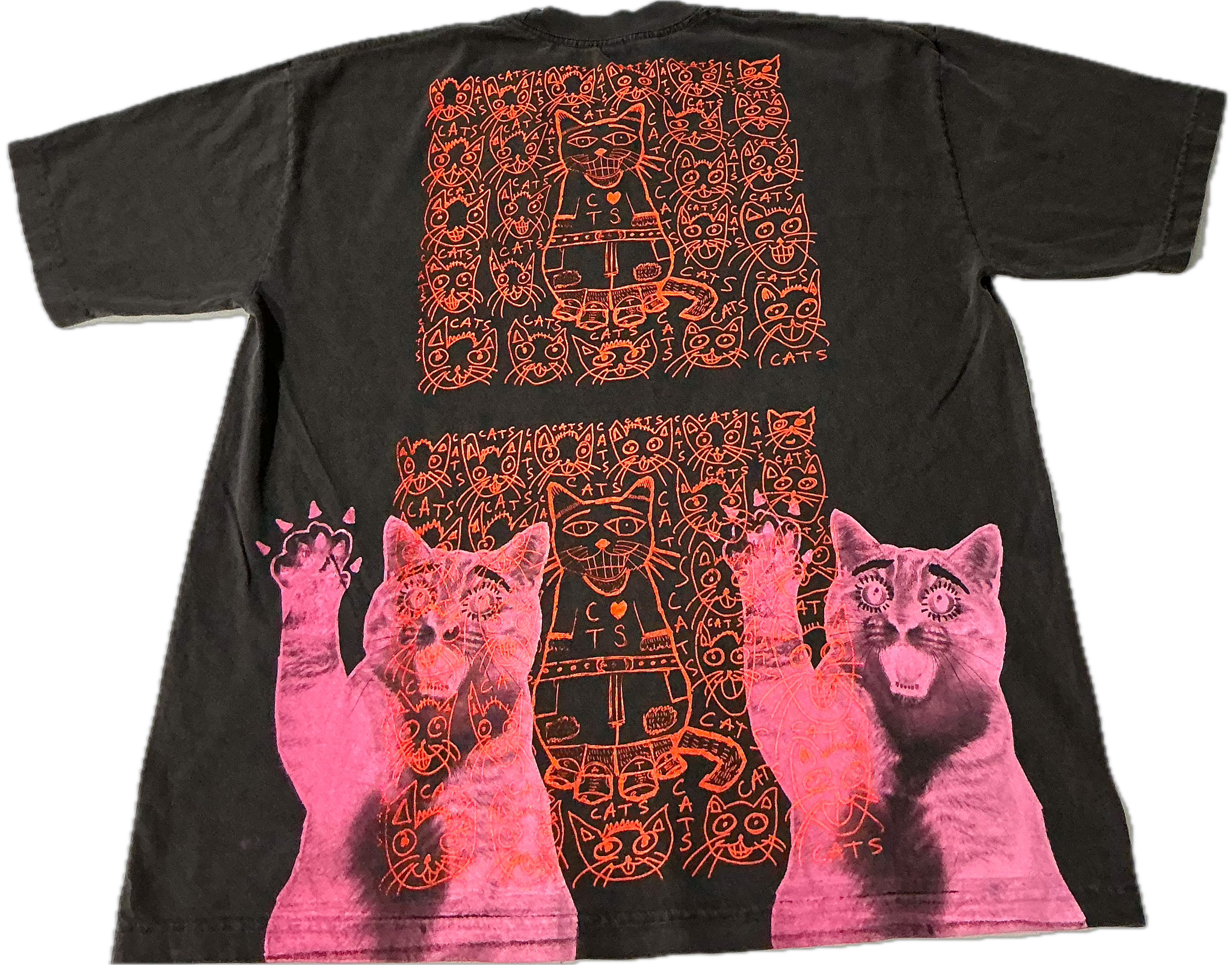 This is a one of a kind piece of clothing that has cats & dogs printed all over the garment.